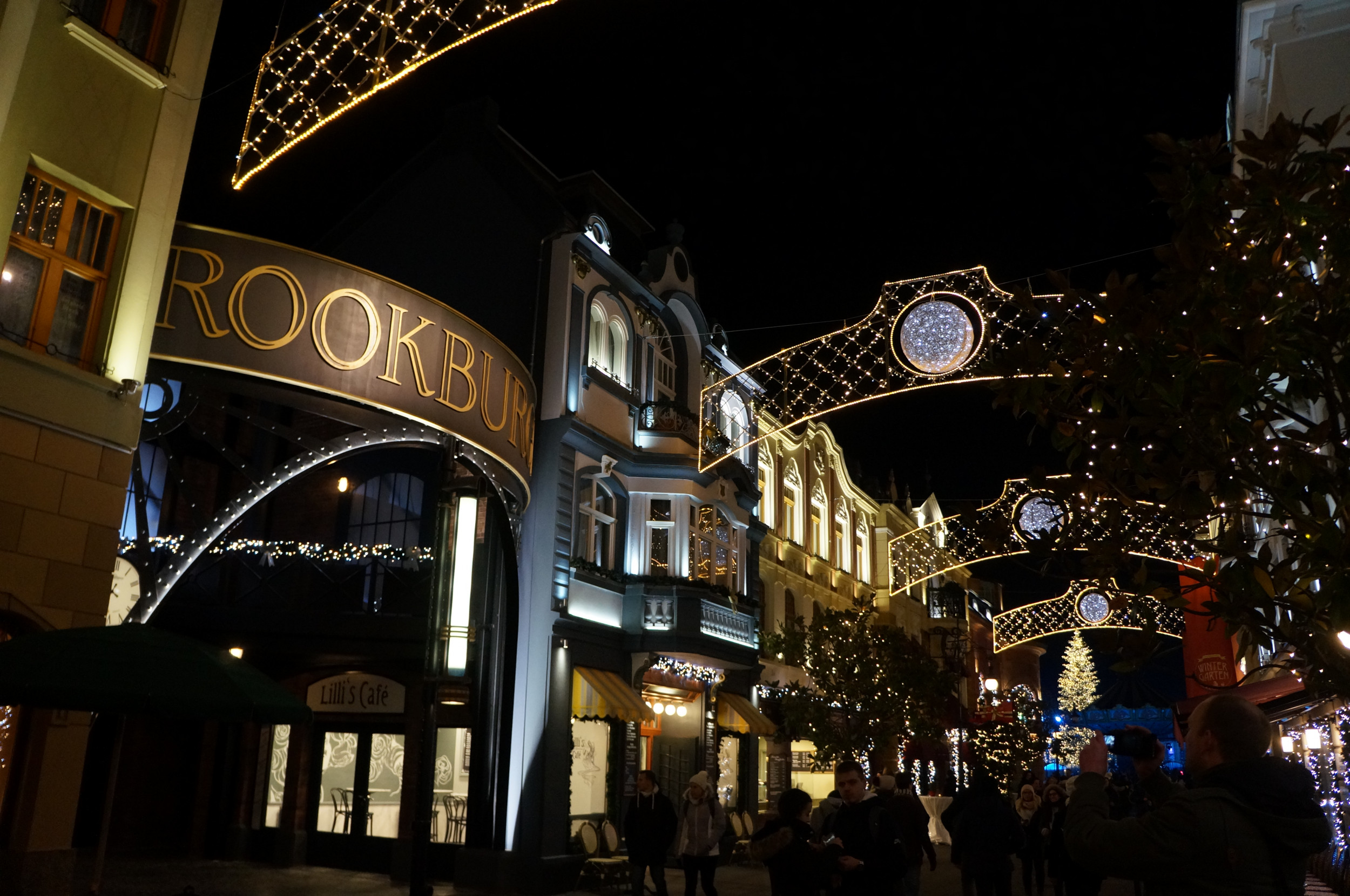Unser Fußmarsch ging weiter nach "Klugheim". Vor allem jetzt in der kalten Jahreszeit wirkt der unumstrittene "Place to be" für kluge Köpfe, mit all seinen Girlanden und weihnachtlichen Dekorationen, derart magisch, dass man für einen Augenblick meinen könnte, man stände im zauberhaften Dörfchen "Hogsmeade". Neben einem Besuch im urigen Restaurant "Rutmor´s Taverne" empfehlen wir Euch den Multi-Launch-Coaster "Taron" unbedingt bei Dunkelheit zu fahren - ein spektakuläres Erlebnis!