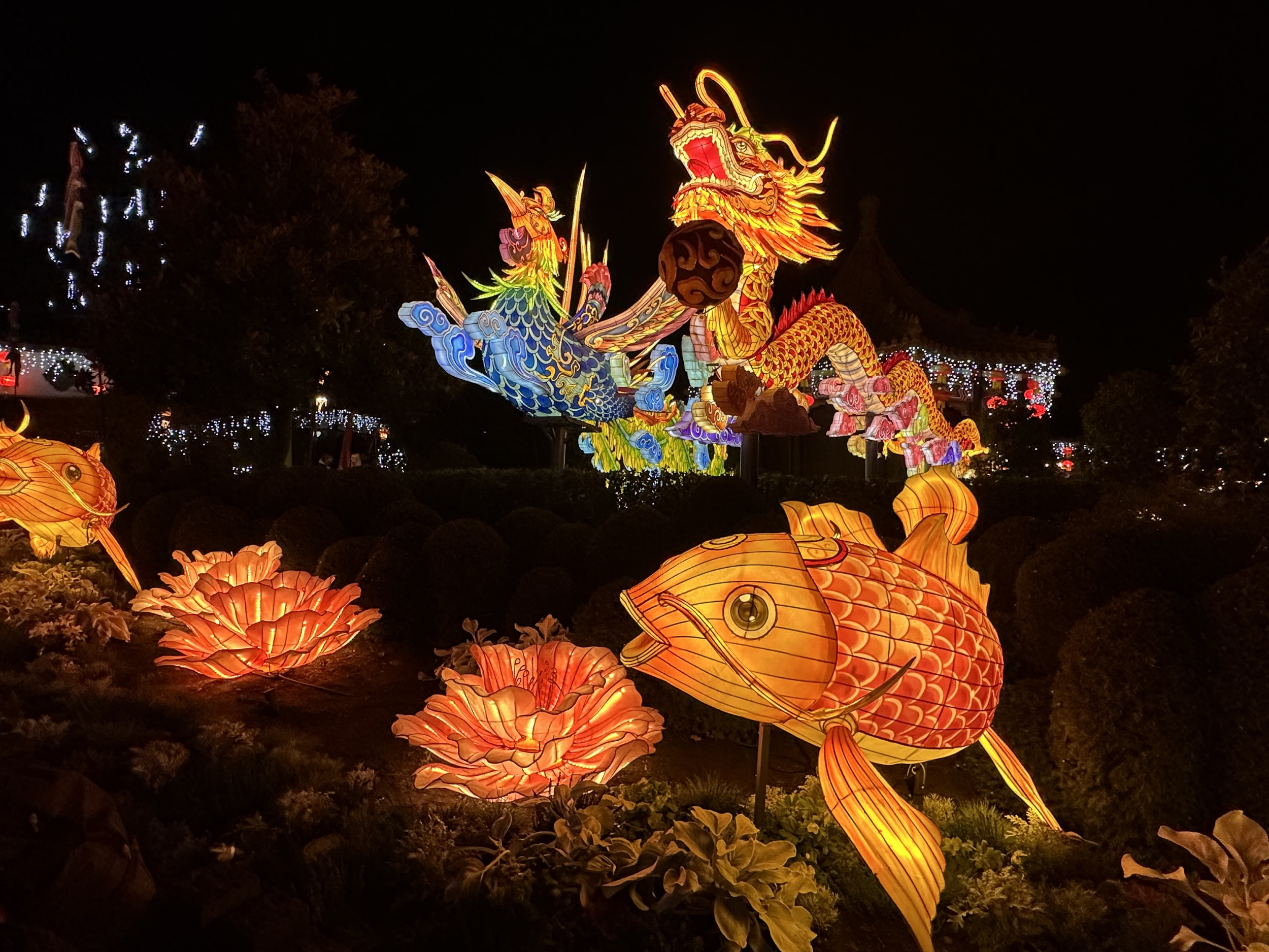 Unbedingt anschauen solltet ihr euch auch den aufwendig dekorierten Garten des asiatischen Vier-Sterne-Superior-Hotels Ling Bao. Abertausende Lämpchen verwandeln den Innenhof des Hotels in ein strahlendes Lichtermeer.