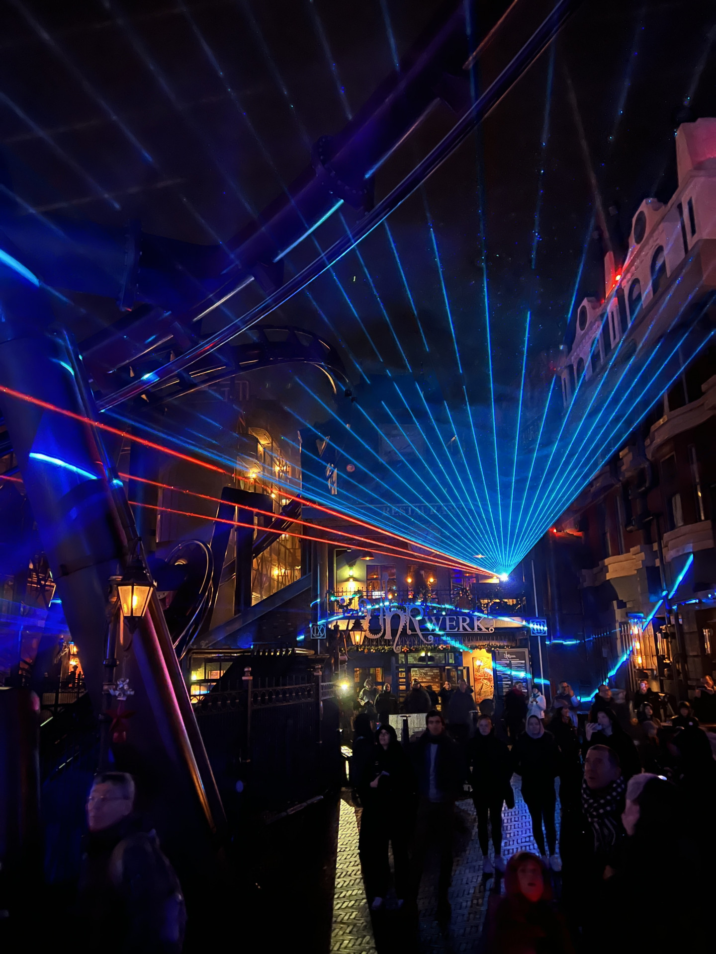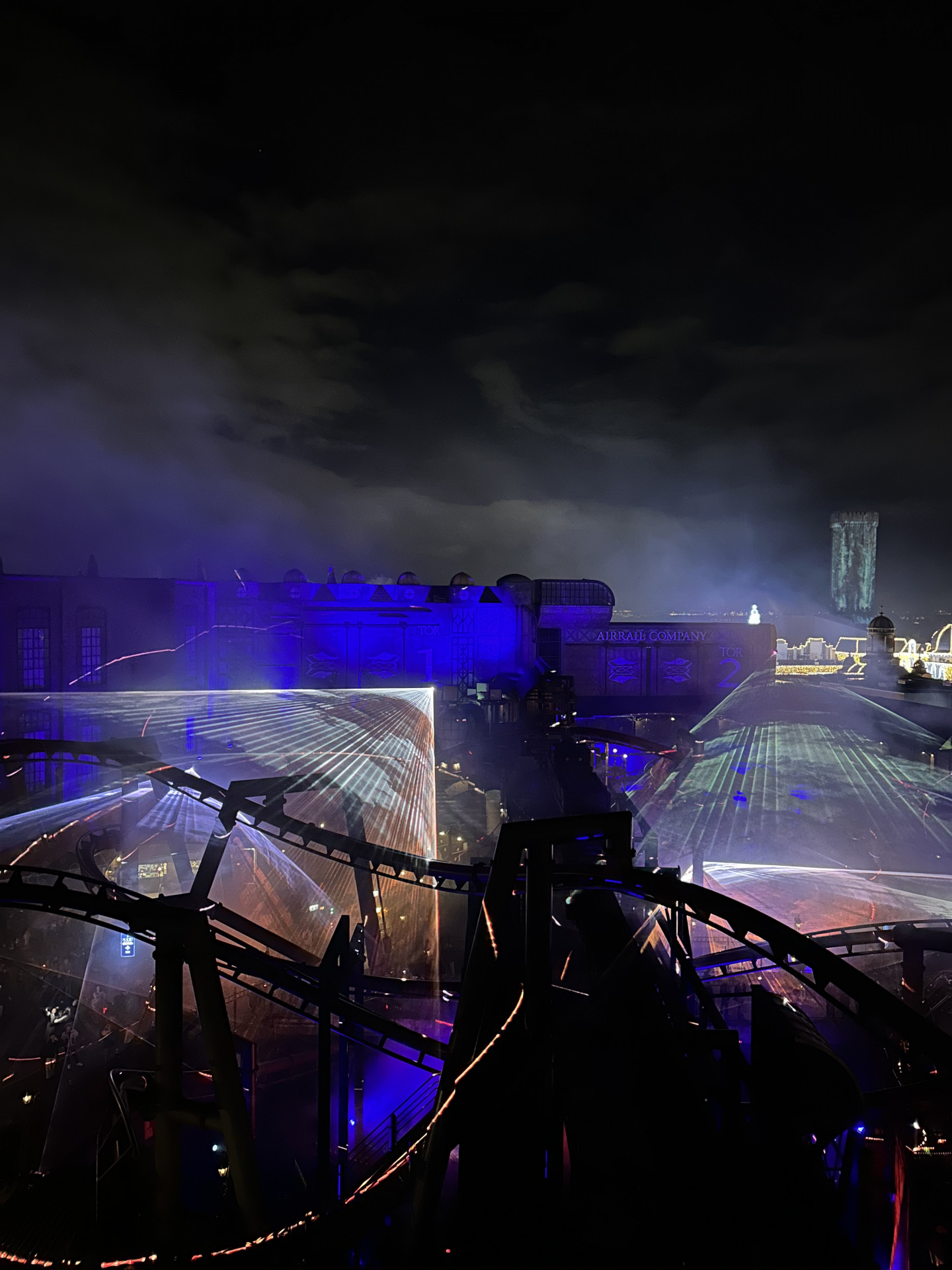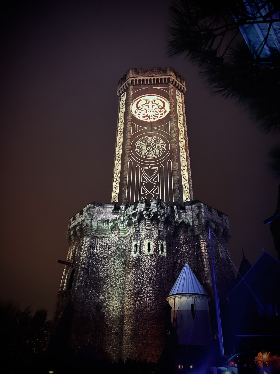 Seid dabei, wenn auf den mächtigen Gemäuern des 65 Meter hohen Bungee Drop Towers schillernde Welten aus Licht und Magie das Dunkel der Nacht durchbrechen und phantastische Bilder und Ornamente in den tiefschwarzen Himmel zaubern.