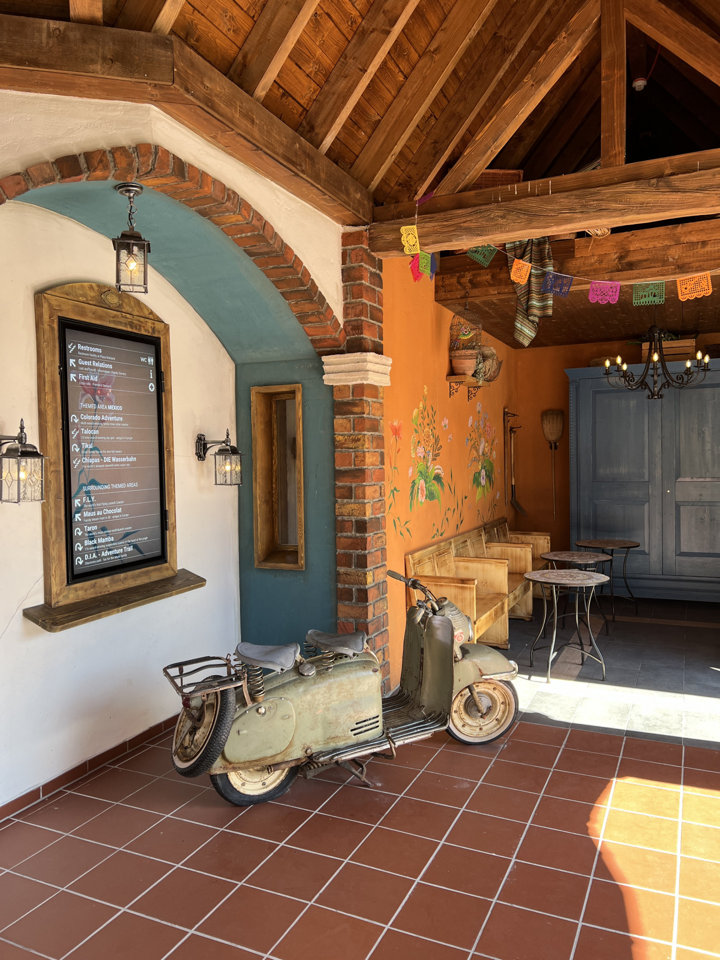 Das Interieur setzt diesem Erlebnis die Krone auf: Die Handschrift des vertrauten Wuze-Stils ist klar erkennbar, doch alles wirkt frischer, farbenfroher und moderner. Bekannte Elemente treffen auf neue Akzente, und das Ganze fügt sich wie aus einem Guss in das heutige Phantasialand ein – ein Ort, der genauso zum Staunen einlädt wie die Köstlichkeiten auf dem Teller.