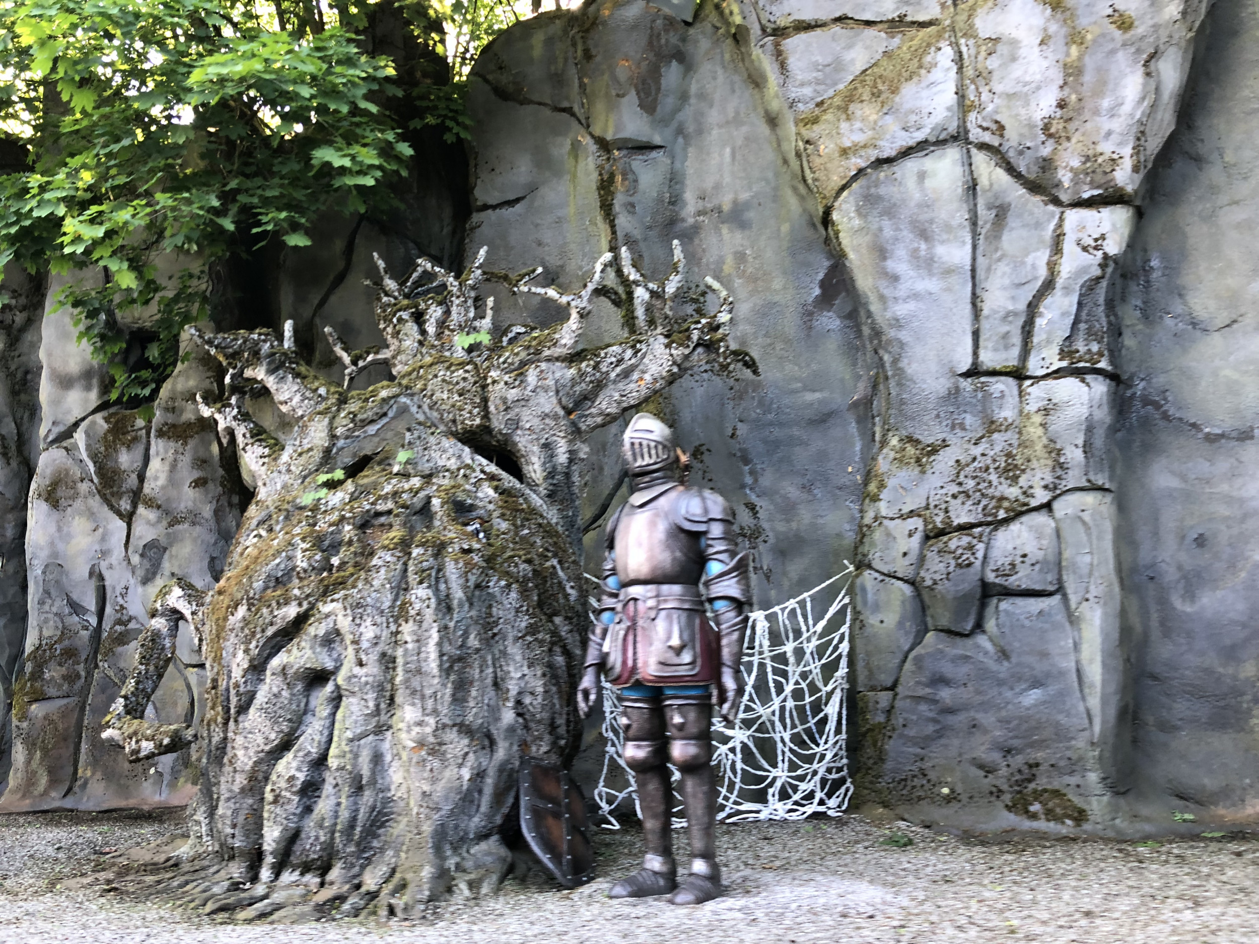 Einigen Gästen dürfte die Wasser-Attraktion noch als „Mystery River“ oder „Die unendliche Geschichte“ bekannt sein. „Es ist eines der ältesten und zugleich beliebtesten Fahrgeschäfte in unserem Park“ so der Geschäftsführer. Mehr als 900 Liter Farbe, 2500 Meter Kabel, 200 neue Lichter und mehr als 150 neue Lautsprecher ließen in einer mehrmonatigen Bauphase und nach rund einem Jahr Planungszeit die spannende Geschichte entstehen. „Knapp 100 Menschen, sowohl vom Movie Park selbst als auch von anderen Partnerfirmen waren an dem Projekt beteiligt.“ Auf der abenteuerlichen Suche nach dem verschwundenen Schwert Excalibur säumen verzauberte Wälder, dunkle Höhlen und gefährliche Seeungeheuer den Weg. „Es warten 12 neue Szenen mit insgesamt knapp 400 neuen Requisiten auf die Besucher“, fasst Thorsten Backhaus zusammen. Kein ganz leichtes Unterfangen, denn die Attraktion zählt zu den größten ihrer Art in Europa. „Die Fahrcharakteristik bleibt bestehen, wir haben die Geschichte rundherum neu geschrieben. Ich bin mir sicher, dass wir mit dieser aufregenden Welt von Rittern und magischen Wesen alle Generationen begeistern können.“ Fast 13.000 Arbeitsstunden sind geleistet worden, nicht zuletzt, um 15 neue Spezialeffekte und Projektionen einzubauen und 25 neue Musikdateien zu programmieren. „Wie viele Tropfen Schweiß gerade in den letzten Tagen der finalen Phase geflossen sind, vermag ich nicht zu zählen“, sagt er mit einem Augenzwinkern.