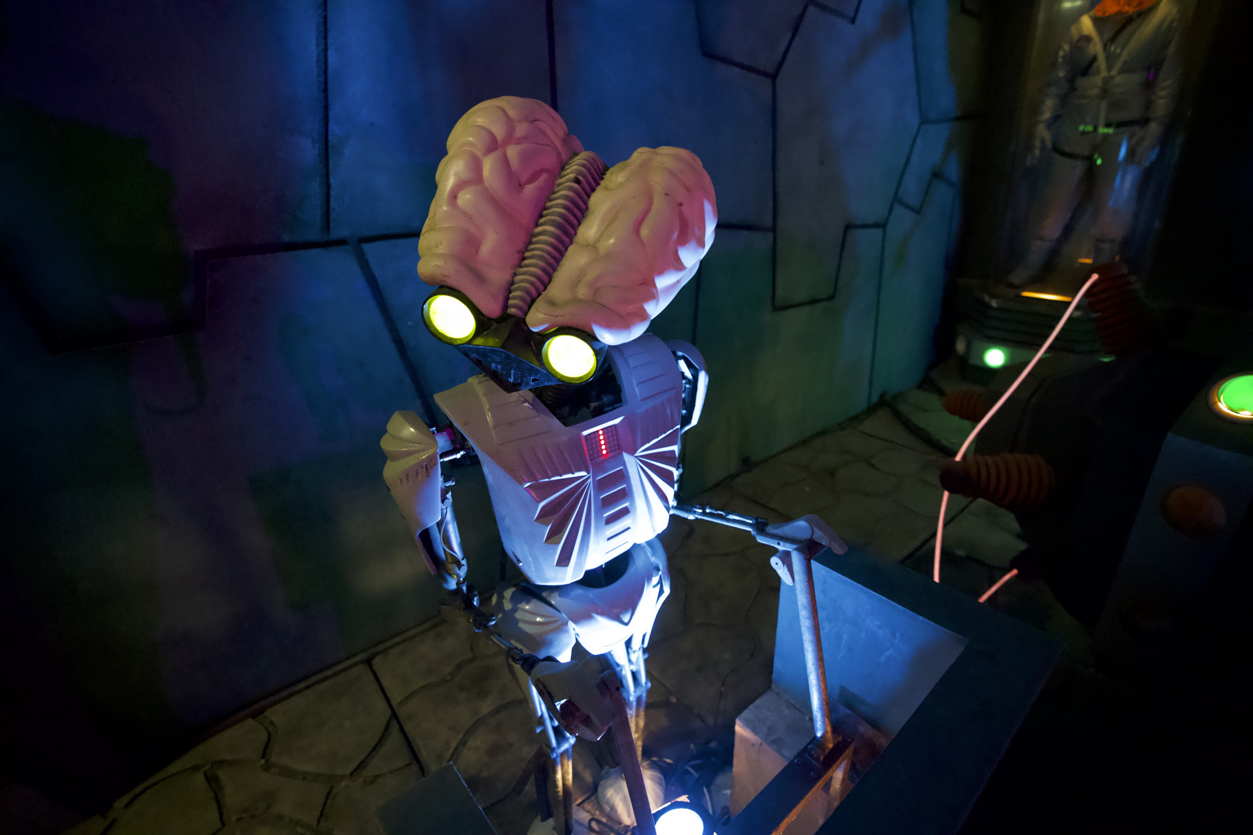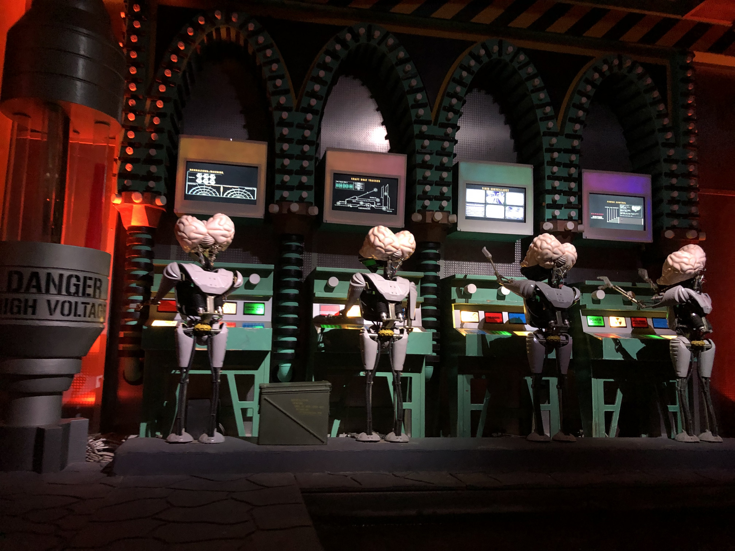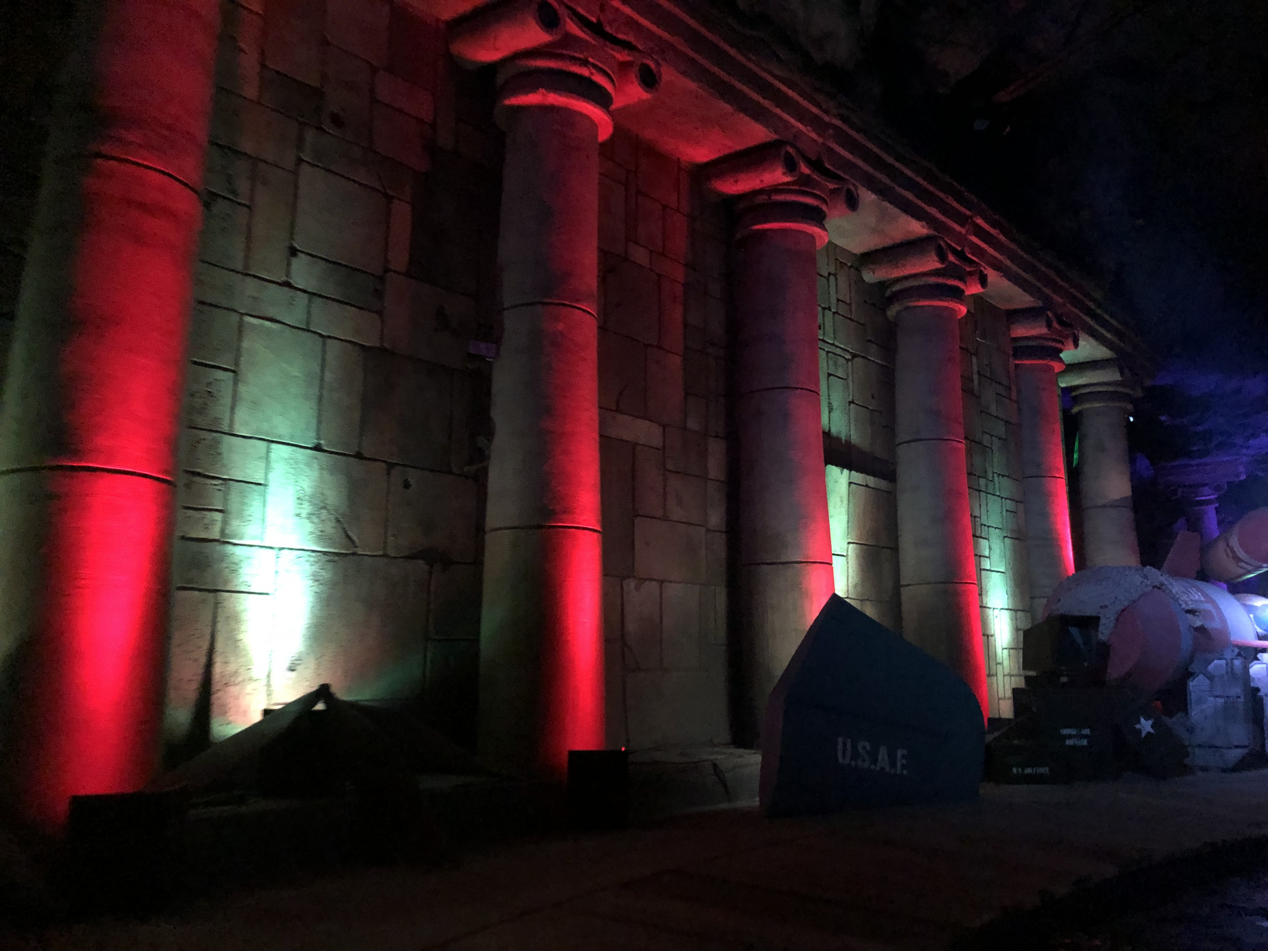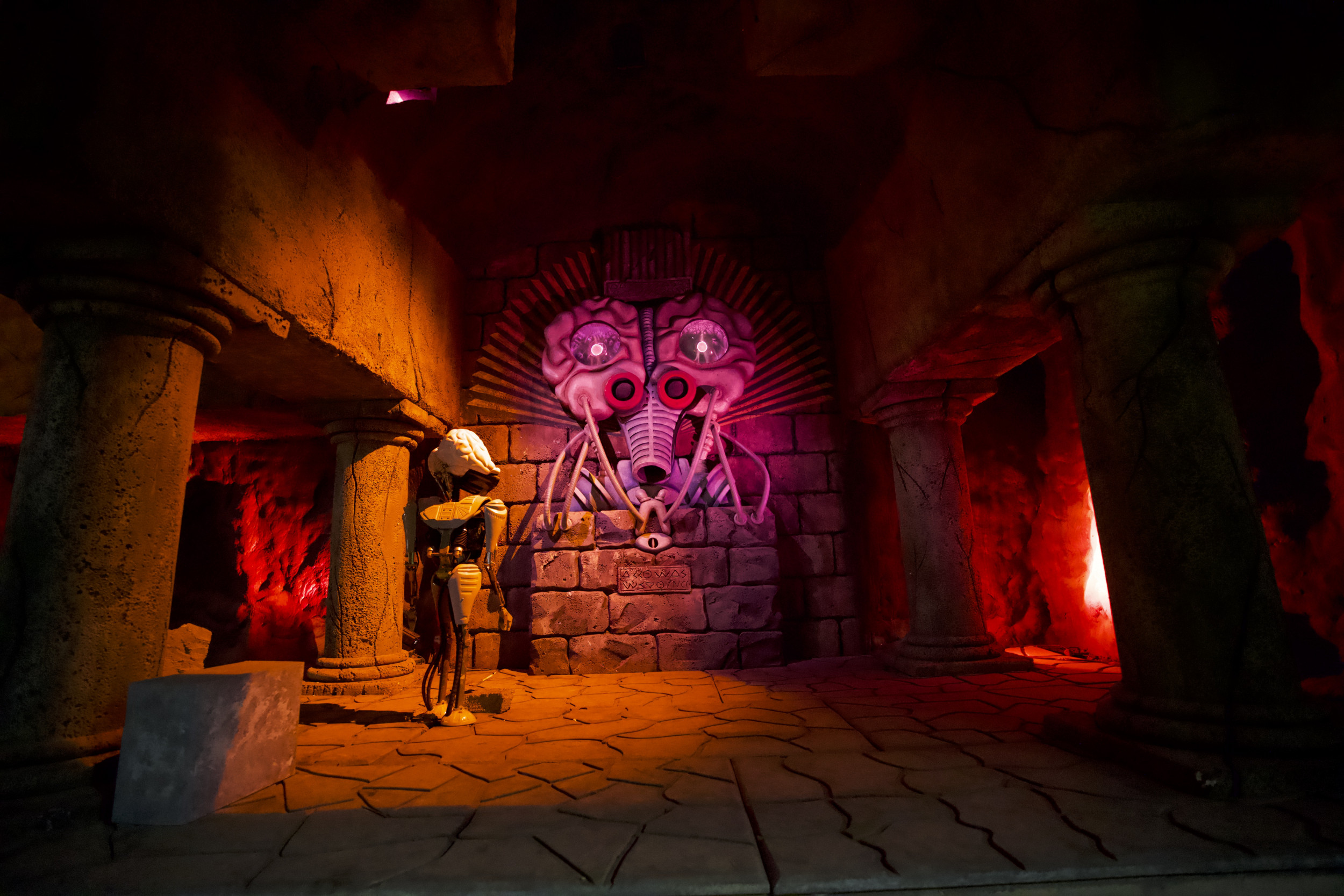 Damit die Attraktion so authentisch wie möglich gestaltet ist, kamen zahlreiche Requisiten und sogar echte Militärgegenstände der US Air Force zum Einsatz: Angefangen bei den 100 Prozent originalgetreuen Repliken der Area 51-Warnschilder, einem Militärflugzeug im Maßstab 1:3, US-typischen Strommästen, einem Aufsichtsturm oder den typischen Willy US-Militär-Jeeps, komplettieren auch originale Militär-Feldbetten aus dem Jahr 1950 oder originale Bestandteile eines US-Düsenjets sowie echte Flugzeugteile die Attraktion. Highlight ist auch ein 300 m² großer originaler US Army Fallschirm, mit dem sonst schwere Lasten und Jeeps zu Boden segeln. Der Turntable und die Boote, in die sich die Besucher für ihre Entdeckungsreise begeben, wurden nicht nur farblich neugestaltet, sondern auch technisch komplett überholt und an die Thematik rund um die US Air Force Base angepasst. Auch hier orientierte sich das Projektteam beim Design und den Farbschemata streng an den Original-Farben der zeitlichen Epoche. Da sich der Luftwaffen-Stützpunkt in der Wüste Nevadas befindet, wurde auch der ehemalige Vulkan an die Storyline angeglichen und erstrahlt nun in neuem, roten Glanz – passend zu den Steinen und Felsen in der amerikanischen Wüste – und wurde mit den für die Region typischen Mieneneingängen versehen.