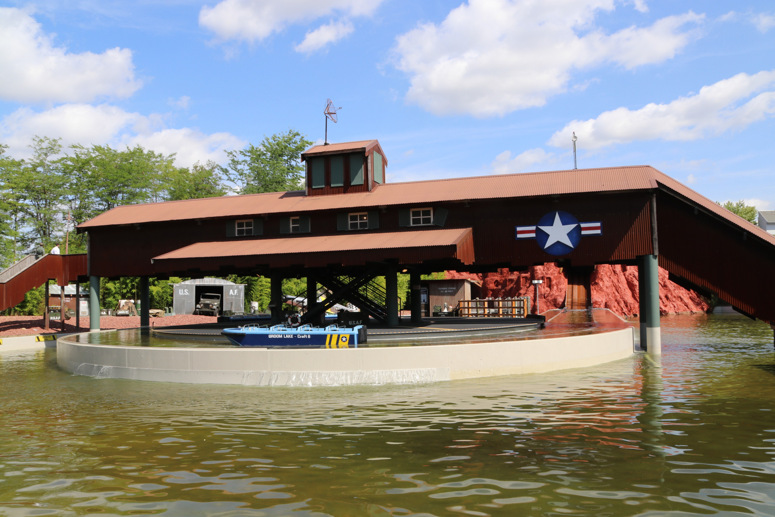 Das beliebte Familienfahrgeschäft, das mit seinen Dimensionen auf einer Grundfläche von mehr als 4.000m² und der Mischung aus Darkride und Wasserbahn einzigartig in Europa ist, wird nämlich nicht nur in eine neue Geschichte verwickelt. Auch die äußerliche Neugestaltung der Attraktion versetzt die Besucher direkt an den Groom Lake der Wüste Nevadas, wo sich das bekannte US-Sperrgebiet befindet. Idee und Konzept stammen aus der eigenen Kreativabteilung des Movie Park Germany, der diese in enger Zusammenarbeit mit dem Team von IMAmedia entwickelt hat.