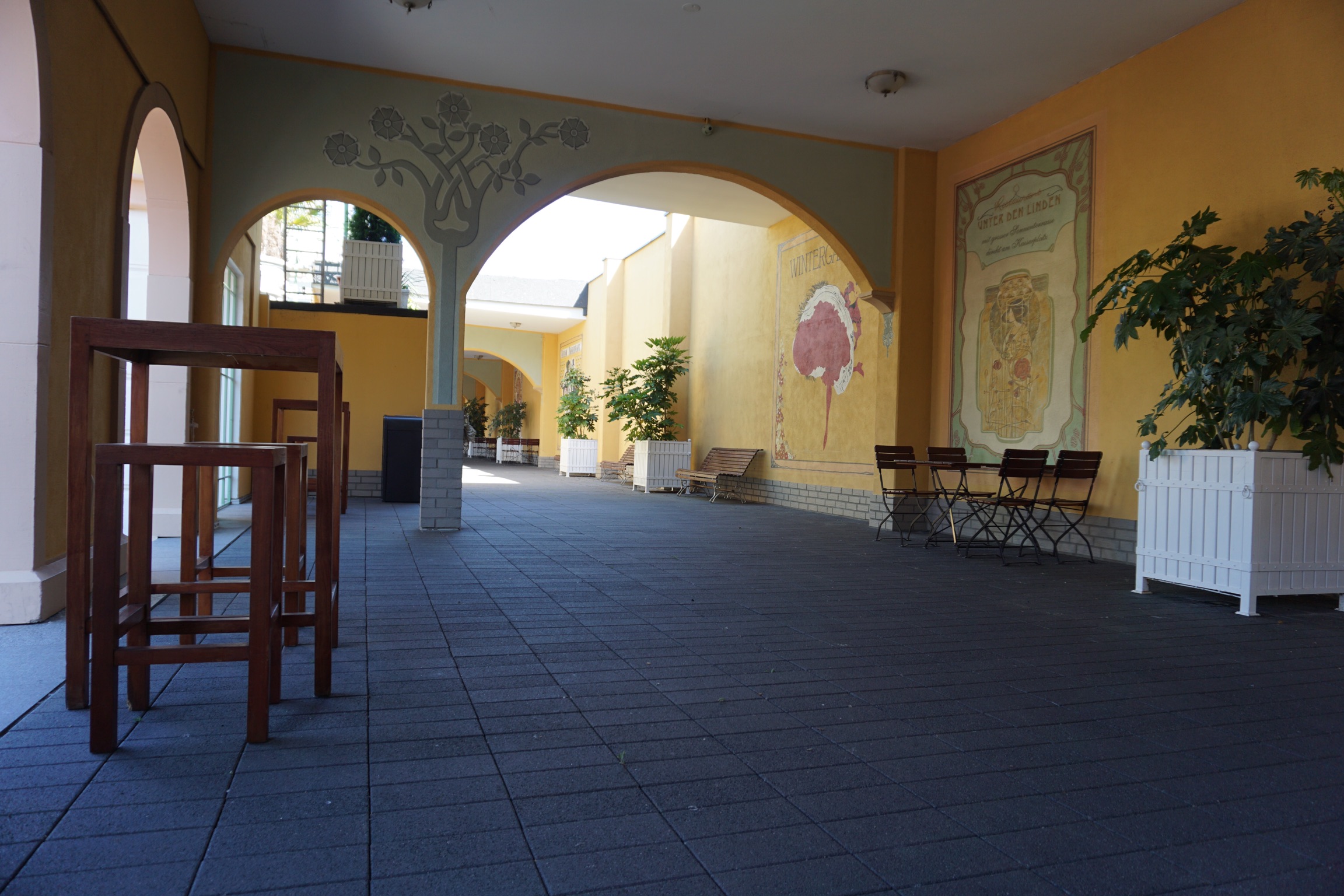 Die Restaurants und Snacks des Parks sind geöffnet. Auch in den gastronomischen Bereichen wurden farbige Bodenmarkierungen angebracht. Gleichzeitig muss im Anstellbereich und beim Kauf der Speisen verpflichtend ein Mund-Nasen-Schutz getragen werden, außer ihr befindet Euch an euren Tischen.