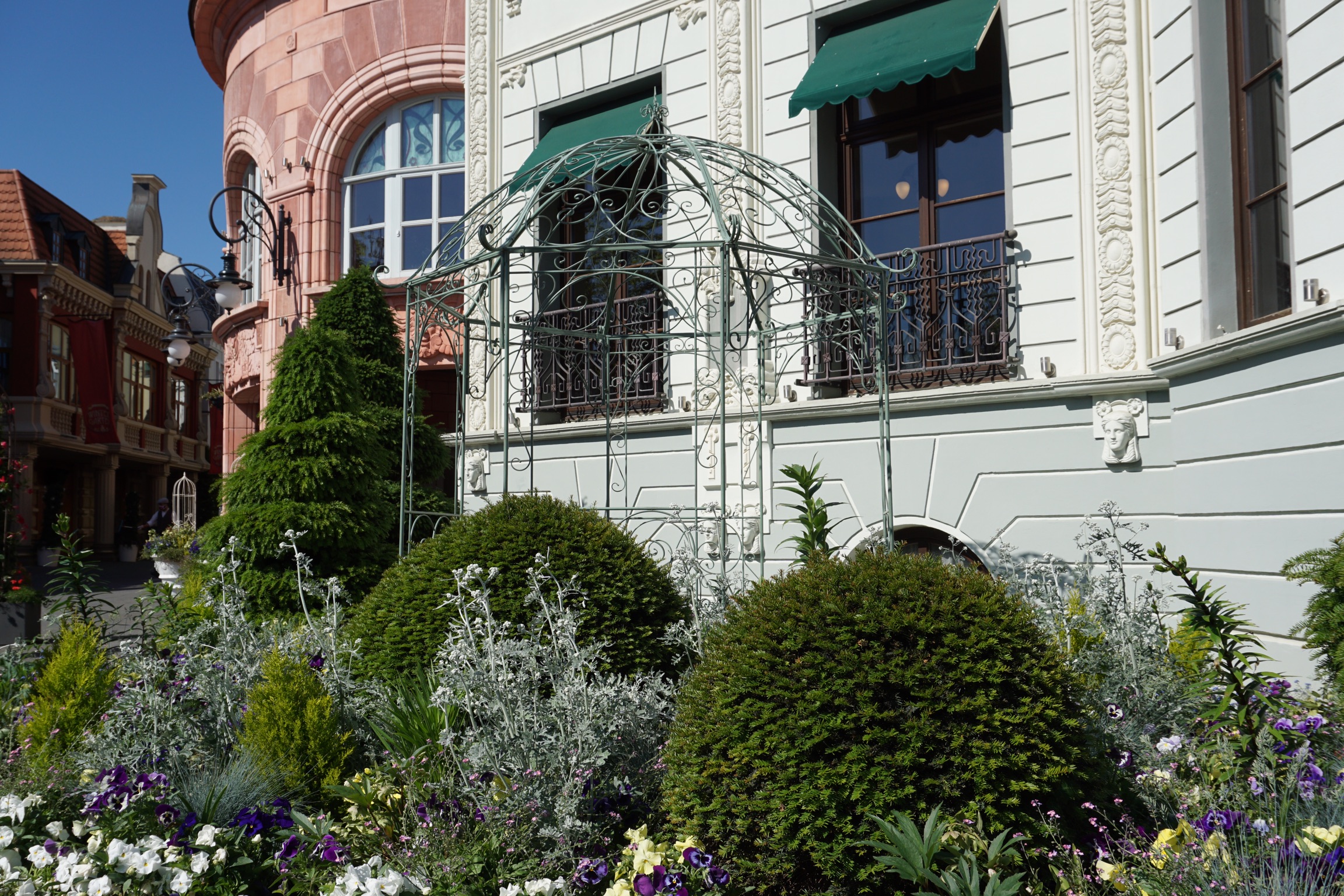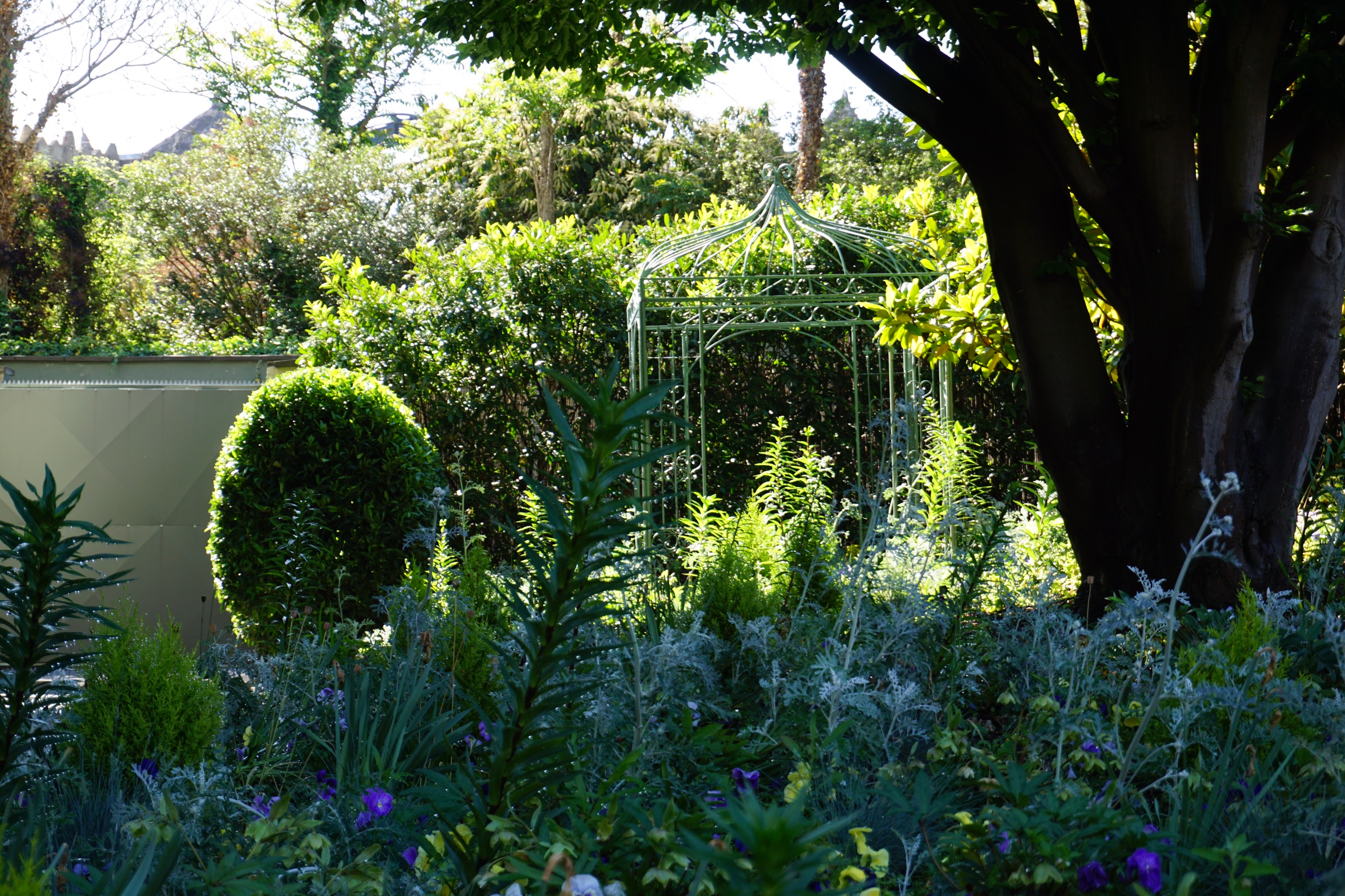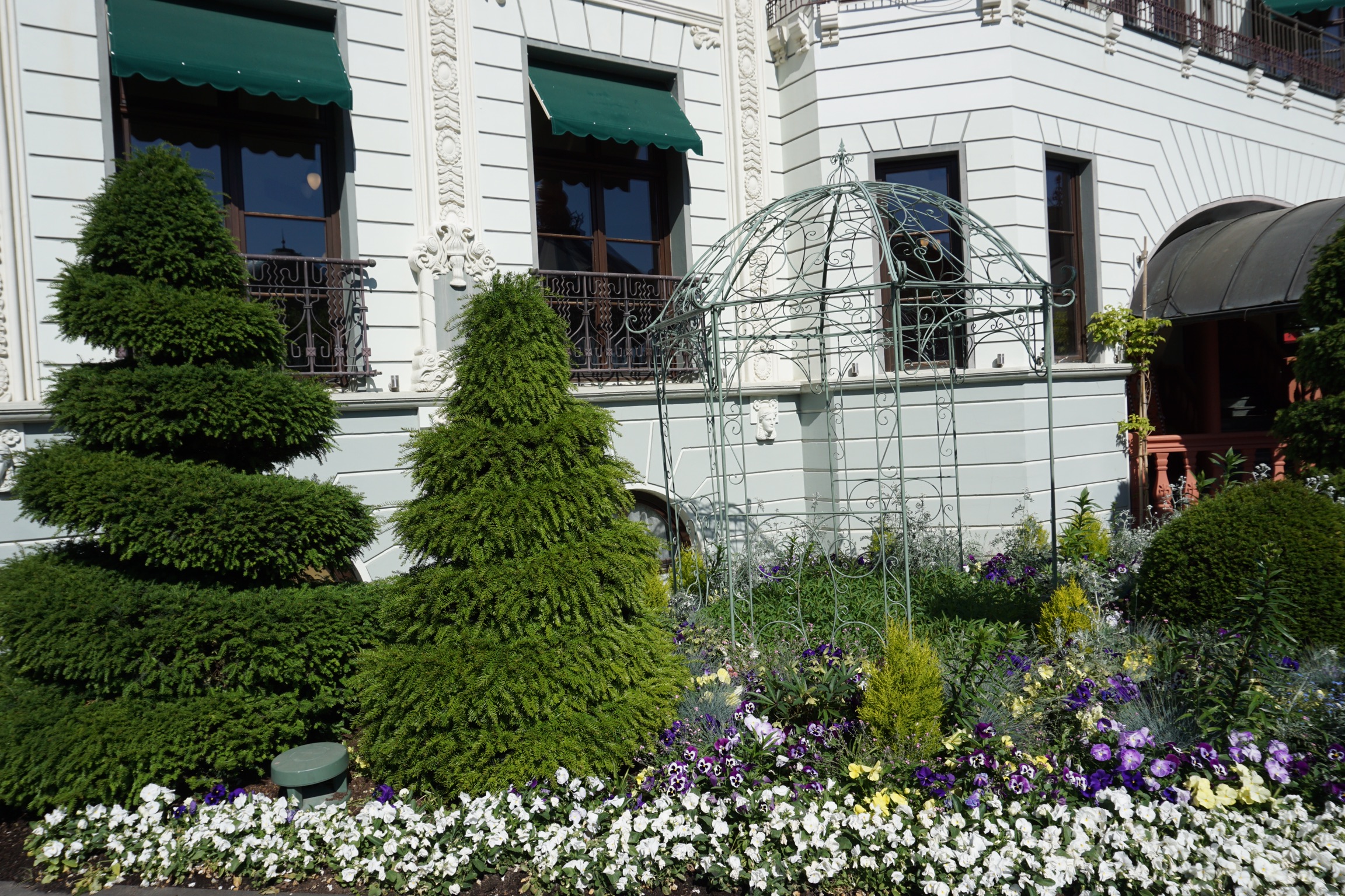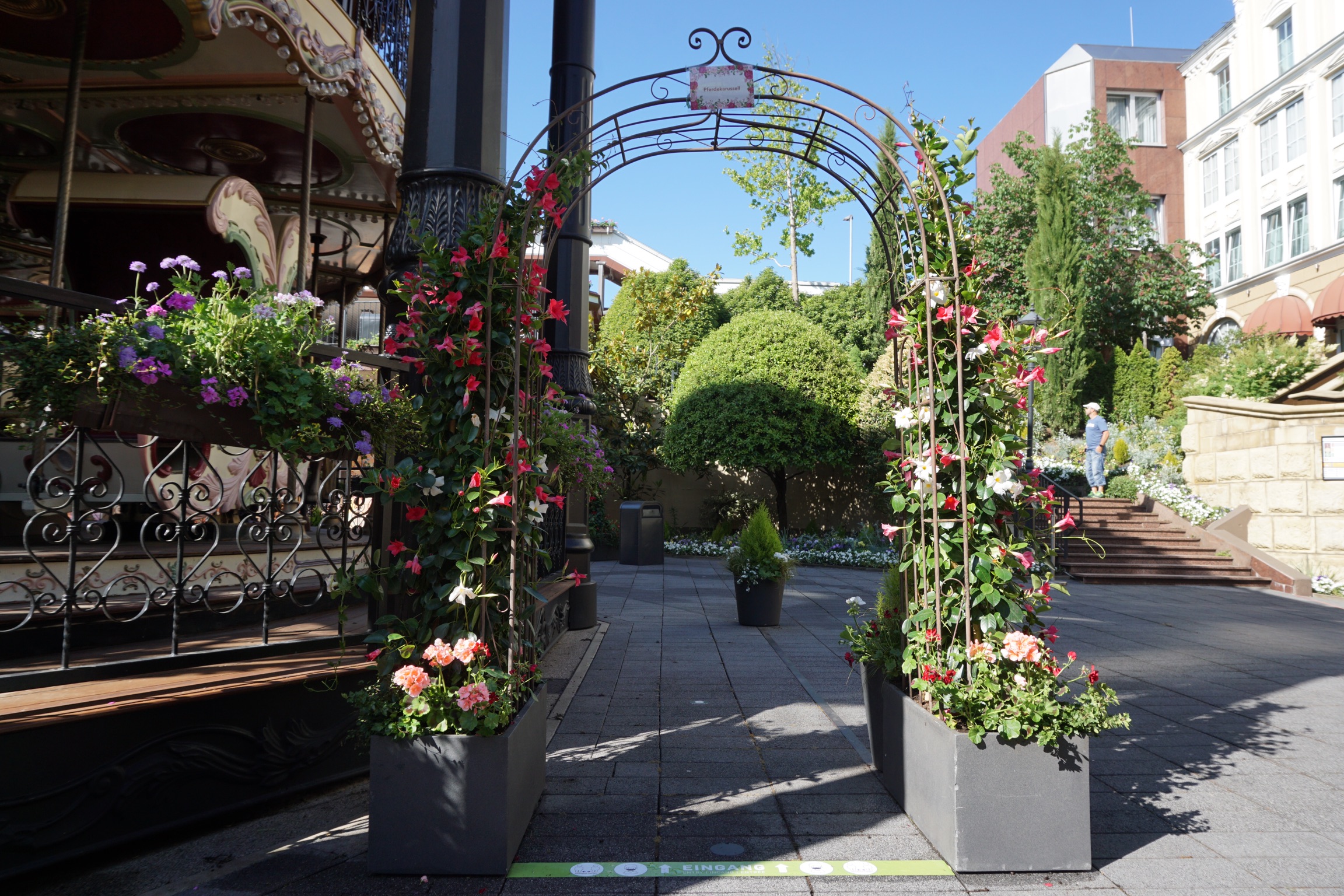 Am Fuße des Wintergarten Ausgangs entfaltet sich ein riesiges Blütenmeer, welches in diesem Jahr mit einem kleinen Gartenpavillon aufgewertet worden ist.