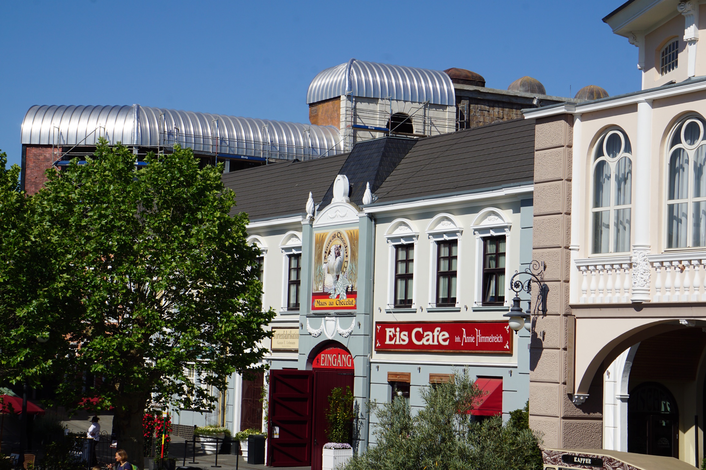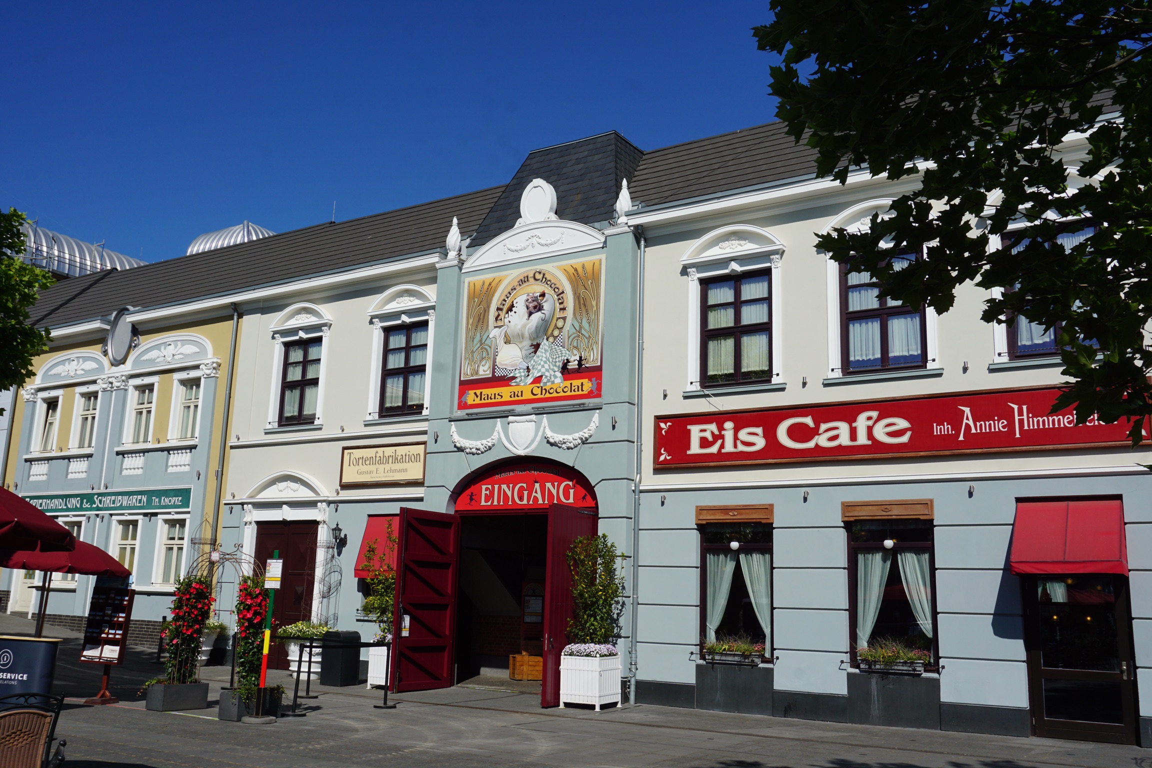 Die Häuserzeile der Berliner Tortenfabrikation "Gustav E. Lehmann“, hat einen neuen Anstrich erhalten und lässt den interaktiven Darkride „Maus au Chocolat“ im neuen Glanz erstrahlen.