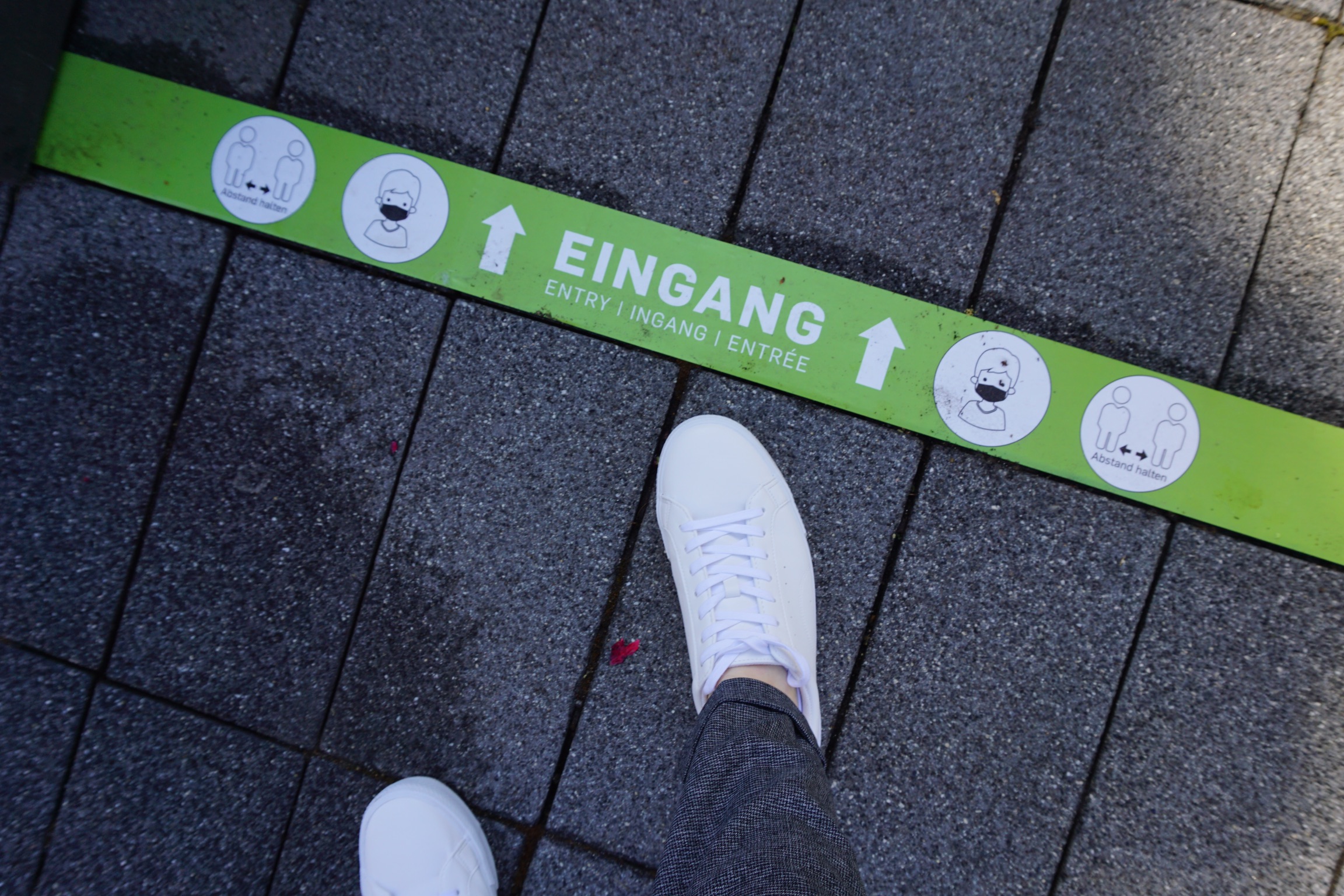 Um einen sorglosen aber vor allem auch sicheren Besuchstag zu gewährleisten, gelten selbstverständlich diverse Hygienevorschriften und Maßnahmen innerhalb des gesamten Areals. So wurden beispielsweise einheitliche Bodenaufkleber und Absperrpfosten angebracht, welche strukturiert für social distancing sorgen und sich optisch erträglich ins Gesamtbild fügen, ohne dabei die vorhandene Atmosphäre zu beeinträchtigen.