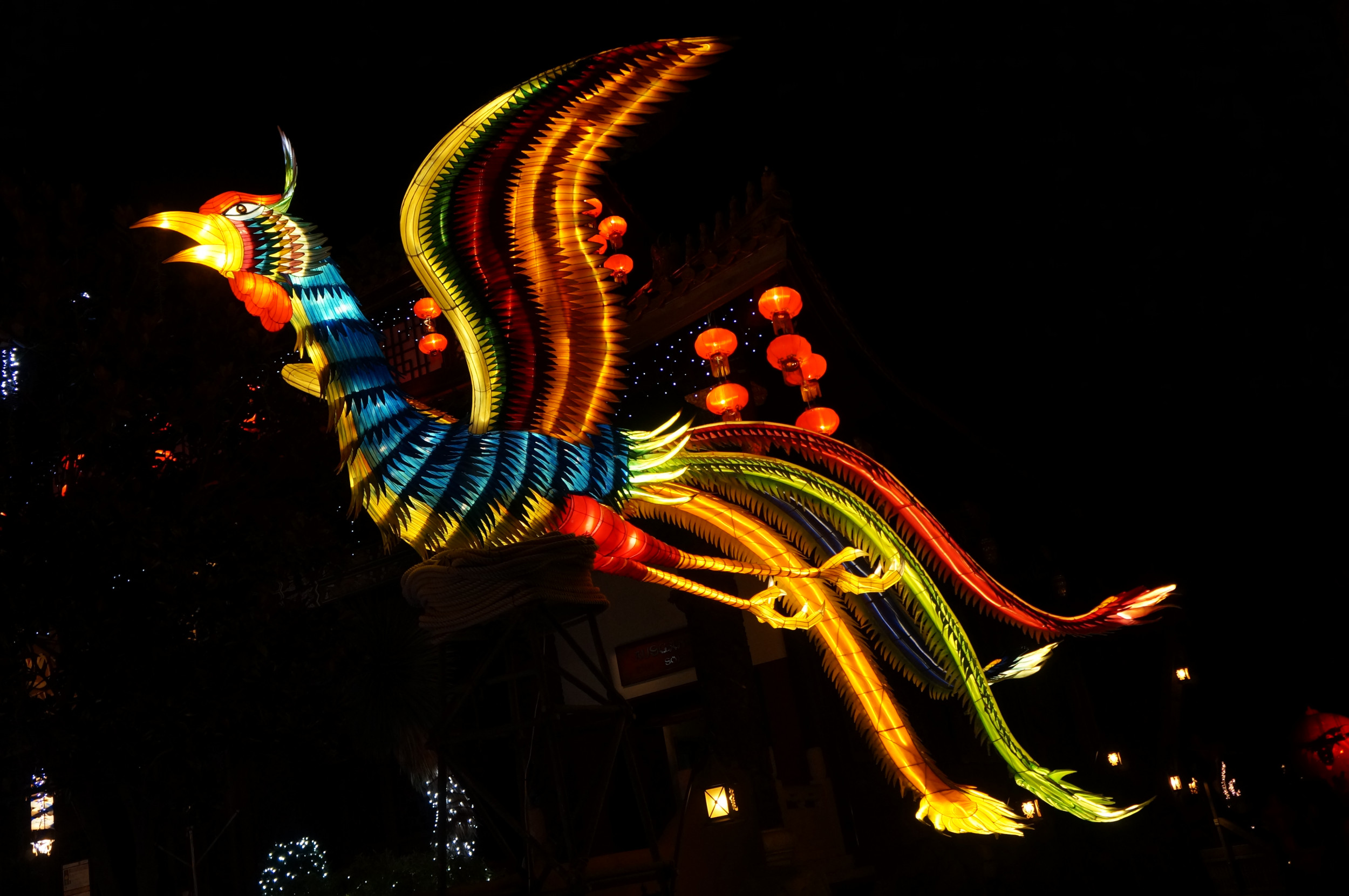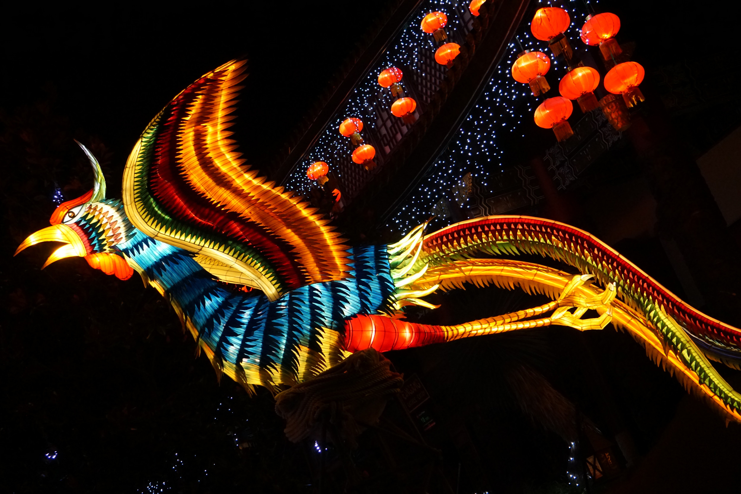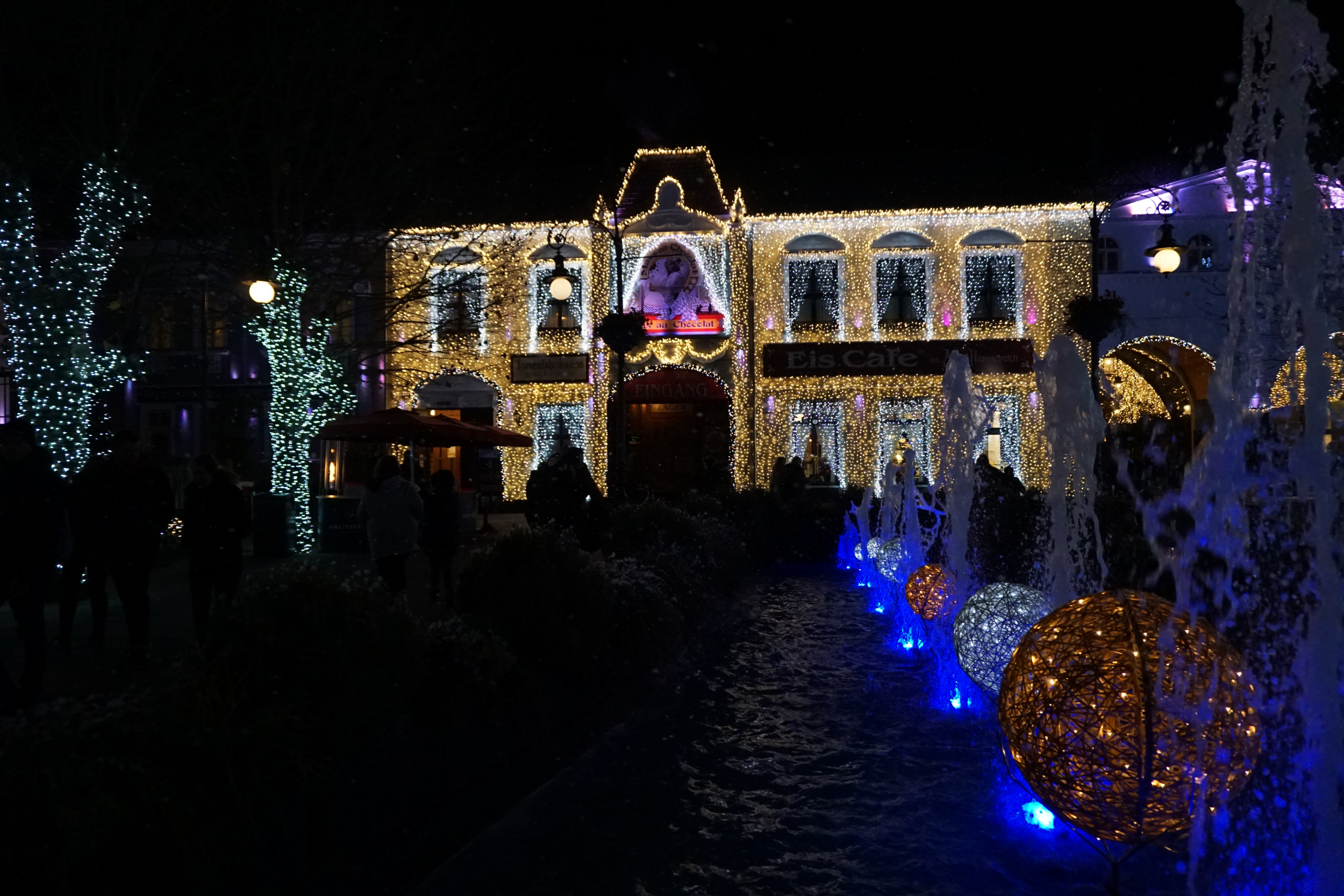 Inmitten der glitzernden Pagodenstadt, ragen meterhohe Drachenskulpturen in Richtung Himmel und verwandeln den asiatischen Themenbereich, zusammen mit weiteren leuchtenden Fabel – und Tierwesen, in ein farbenfrohes Spektakel. Unbedingt anschauen solltet Ihr Euch auch den aufwändig dekorierten Garten des asiatischen Vier-Sterne-Hotels Ling Bao. Abertausende Lämpchen verwandeln den Innenhof des Hotels in ein strahlendes Lichtermeer.