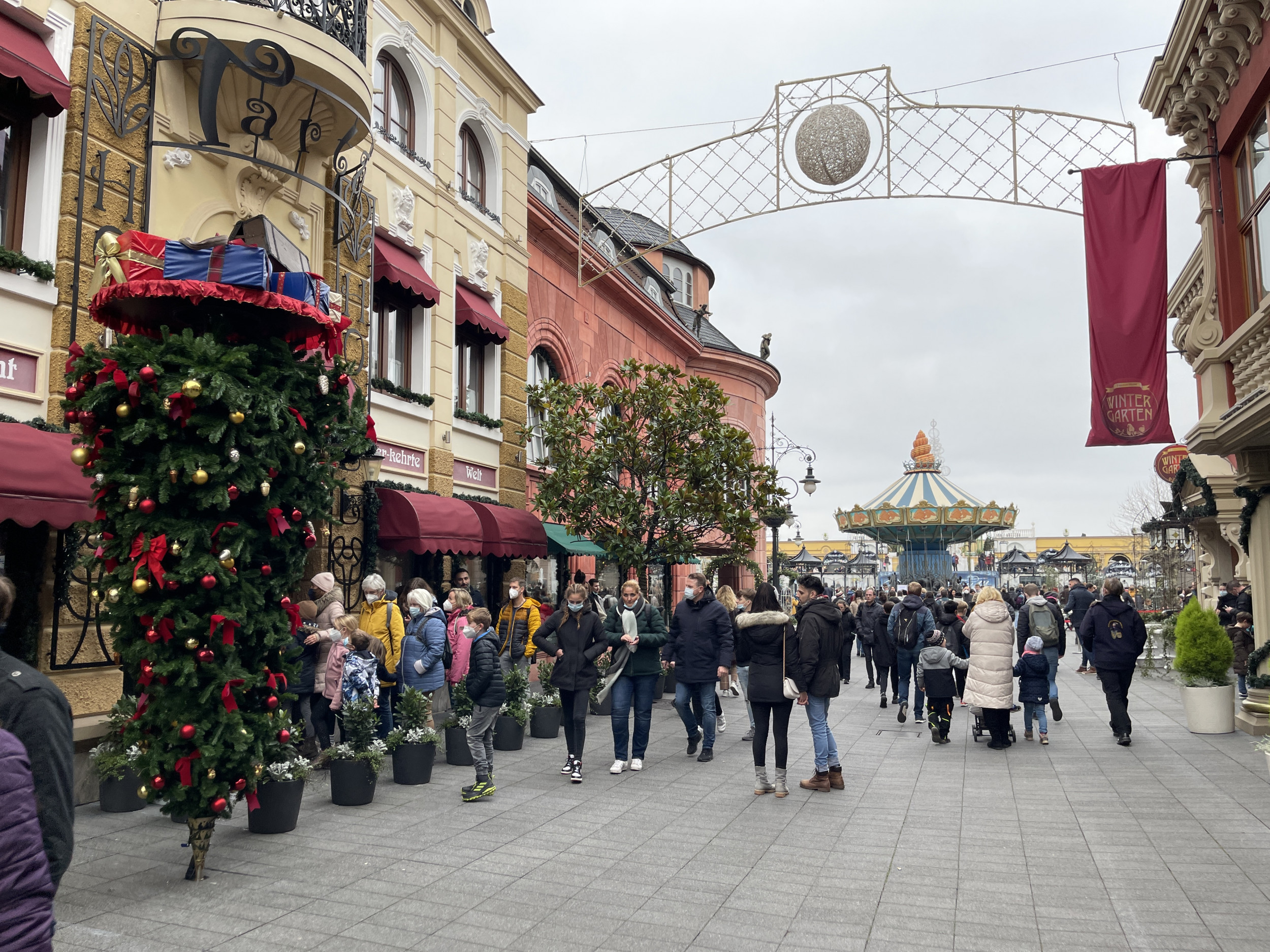 Schon während den ersten Schritten durch das winterliche Phantasialand, fällt die Vielzahl an neuen, innovativen Dekorationen ins Auge. Unser heutiges Winter-Abenteuer startete in der Themenwelt Berlin. Hier lädt die festlich geschmückte Prachtstraße zum Flanieren ein und die große Eislaufbahn am Fuße des behaglichen Weihnachtsmarktes, sorgt für eisiges Vergnügen. Der weitläufige Kaiserplatz hat in diesem Jahr ein umfangreiches Makeover spendiert bekommen und bildet das Herzstück des winterlichen Treibens. Überall prägen verschneite Tannenbäume die einladende Szenerie, prachtvolle Kostüme entzücken für das perfekte Erinnerungsfoto um die Wette und rundherum duftet es nach schmackhaften Punschspezialitäten und köstlichen Leckereien.