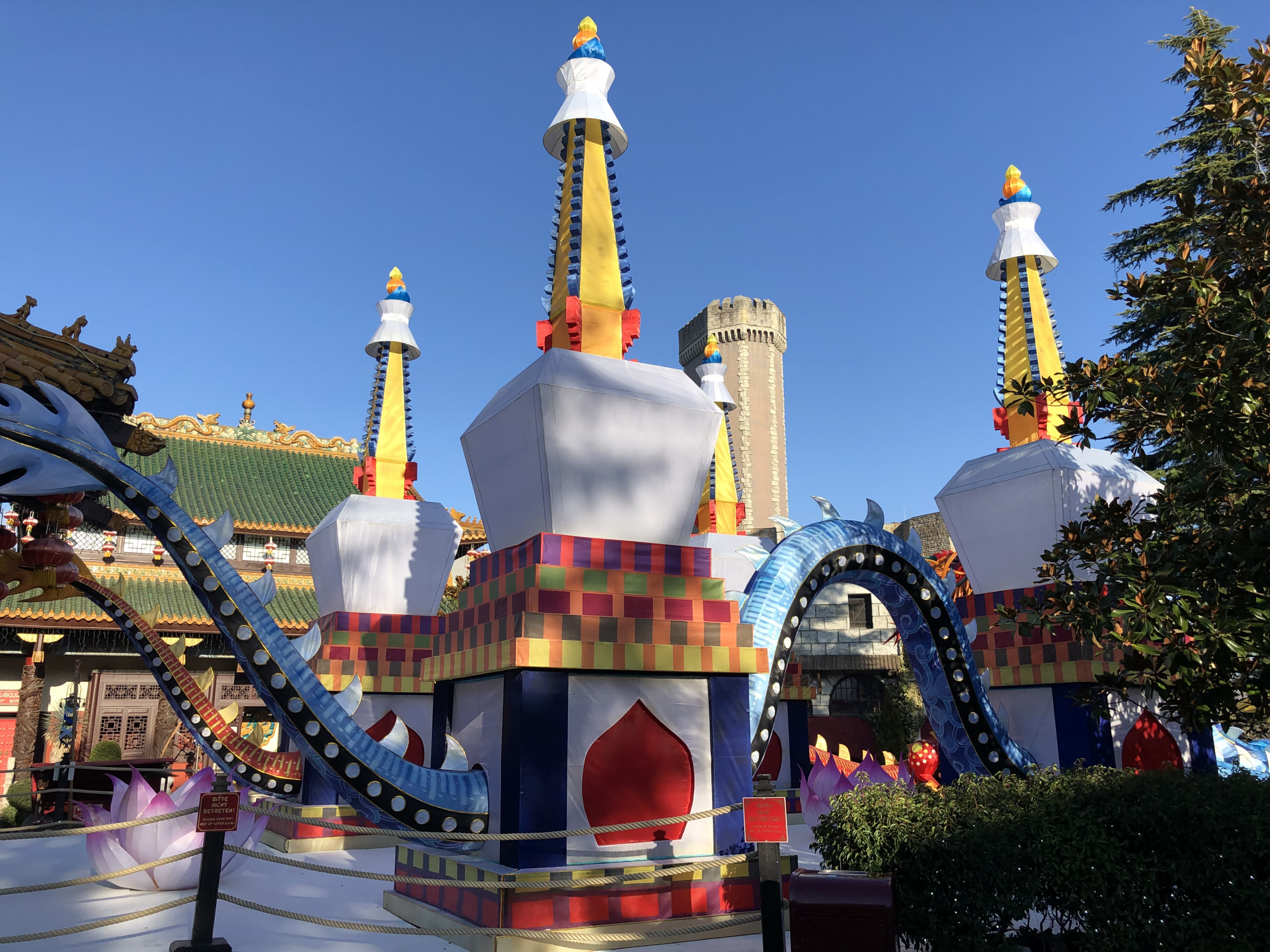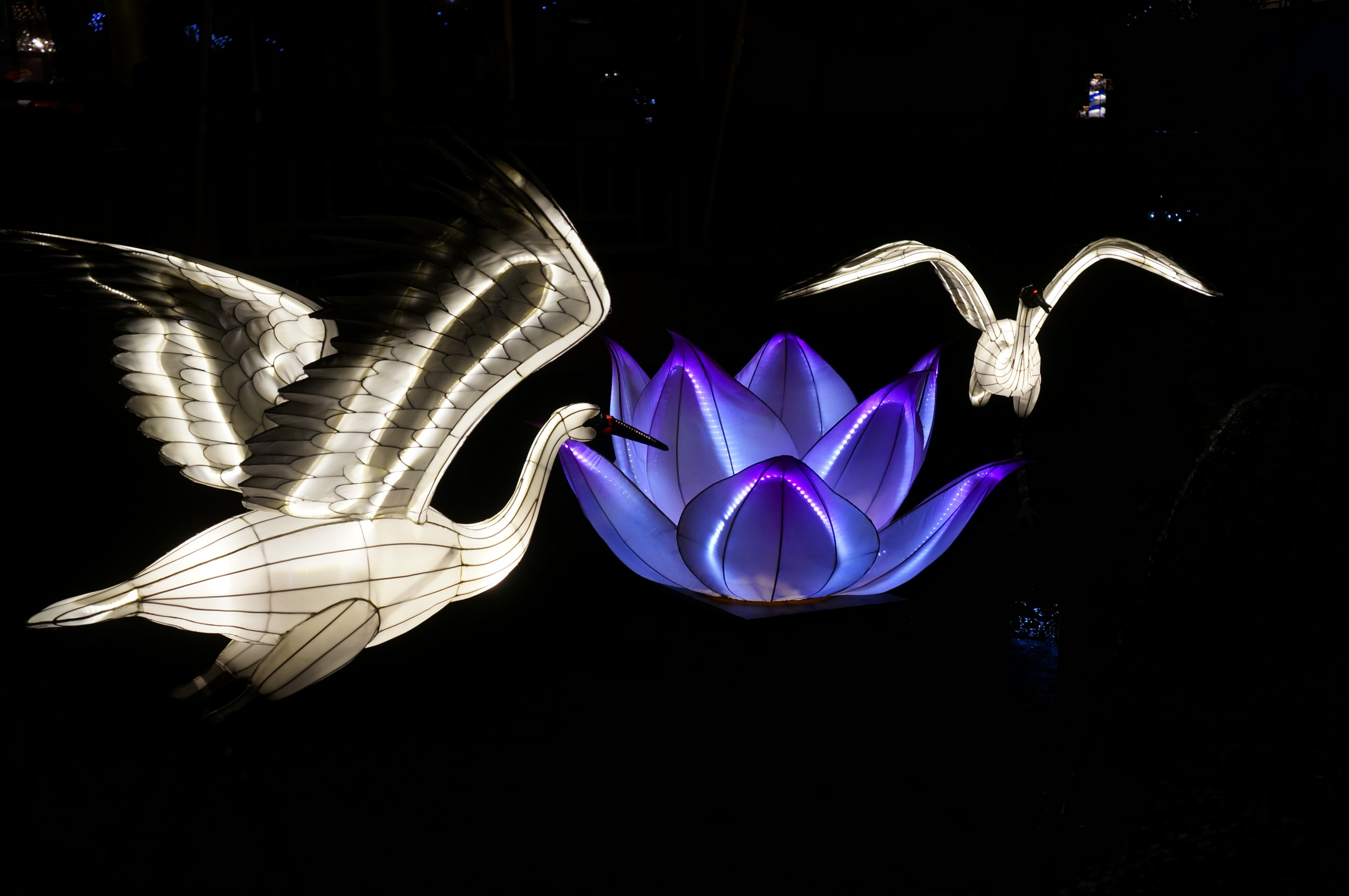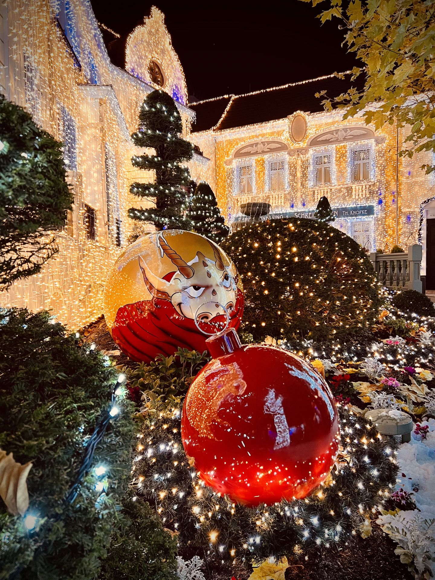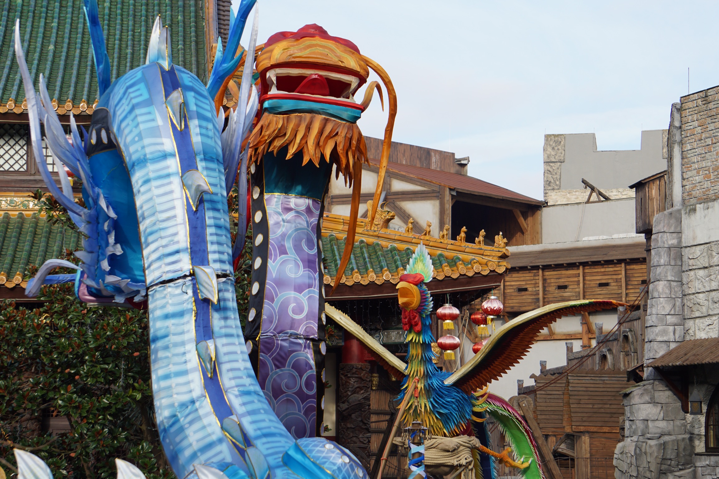 Inmitten der glitzernden Pagodenstadt ragen meterhohe Drachenskulpturen in Richtung Himmel und verwandeln den asiatischen Themenbereich, zusammen mit weiteren leuchtenden Fabel – und Tierwesen, in ein farbenfrohes Spektakel. Unbedingt anschauen solltet Ihr euch auch den aufwändig dekorierten Garten des asiatischen Vier-Sterne-Hotels Ling Bao. Abertausende Lämpchen verwandeln den Innenhof des Hotels in ein strahlendes Lichtermeer.