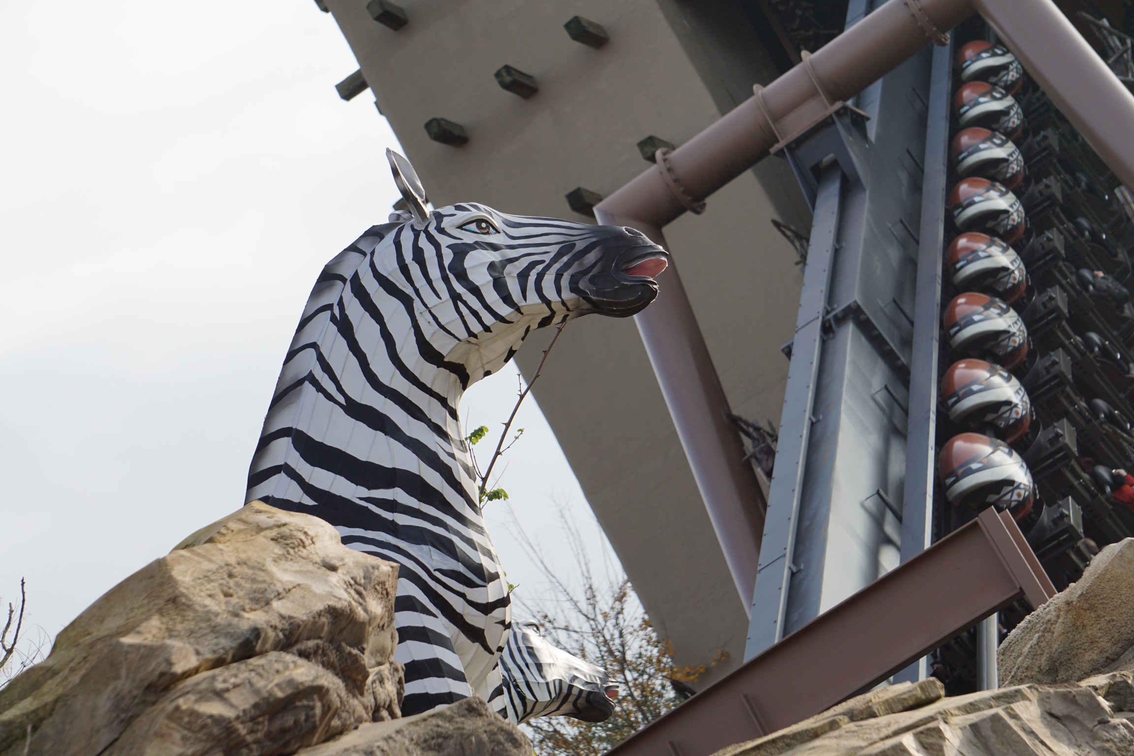 Inmitten der eng verschlungenen Topographie des mehrfach ausgezeichneten Inverted-Coaster Black Mamba sorgen in den Abendstunden leuchtende Wildtiere für eine romantische Savannen-Stimmung.