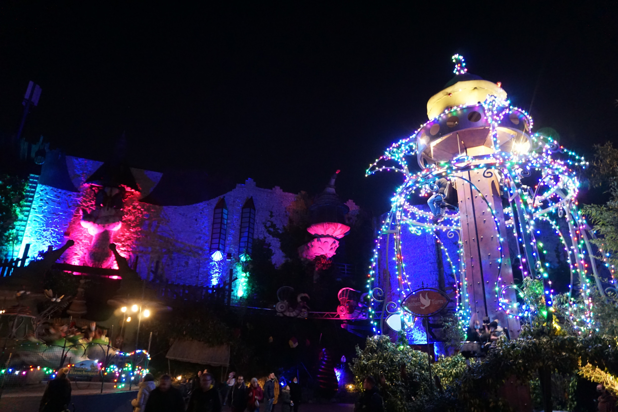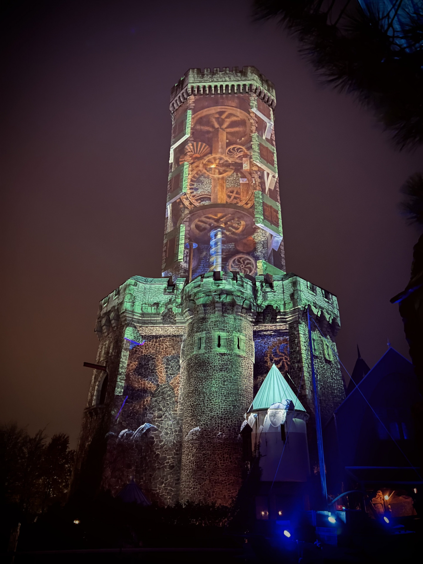 Im Schatten des Mondes verwandelt sich das geheimnisumwitterte Mystery Castle erstmals zum Winter Magic Castle. Auf den mächtigen Gemäuern des 65 Meter hohen Bungee Drop Towers durchbrechen schillernde Welten aus Licht und Magie das Dunkel der Nacht und zaubern phantastische Bilder und Ornamente in den tiefschwarzen Himmel.