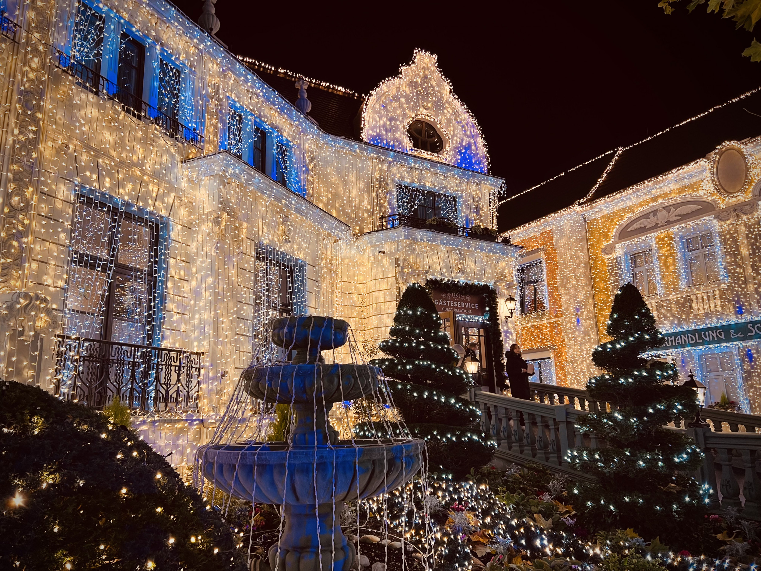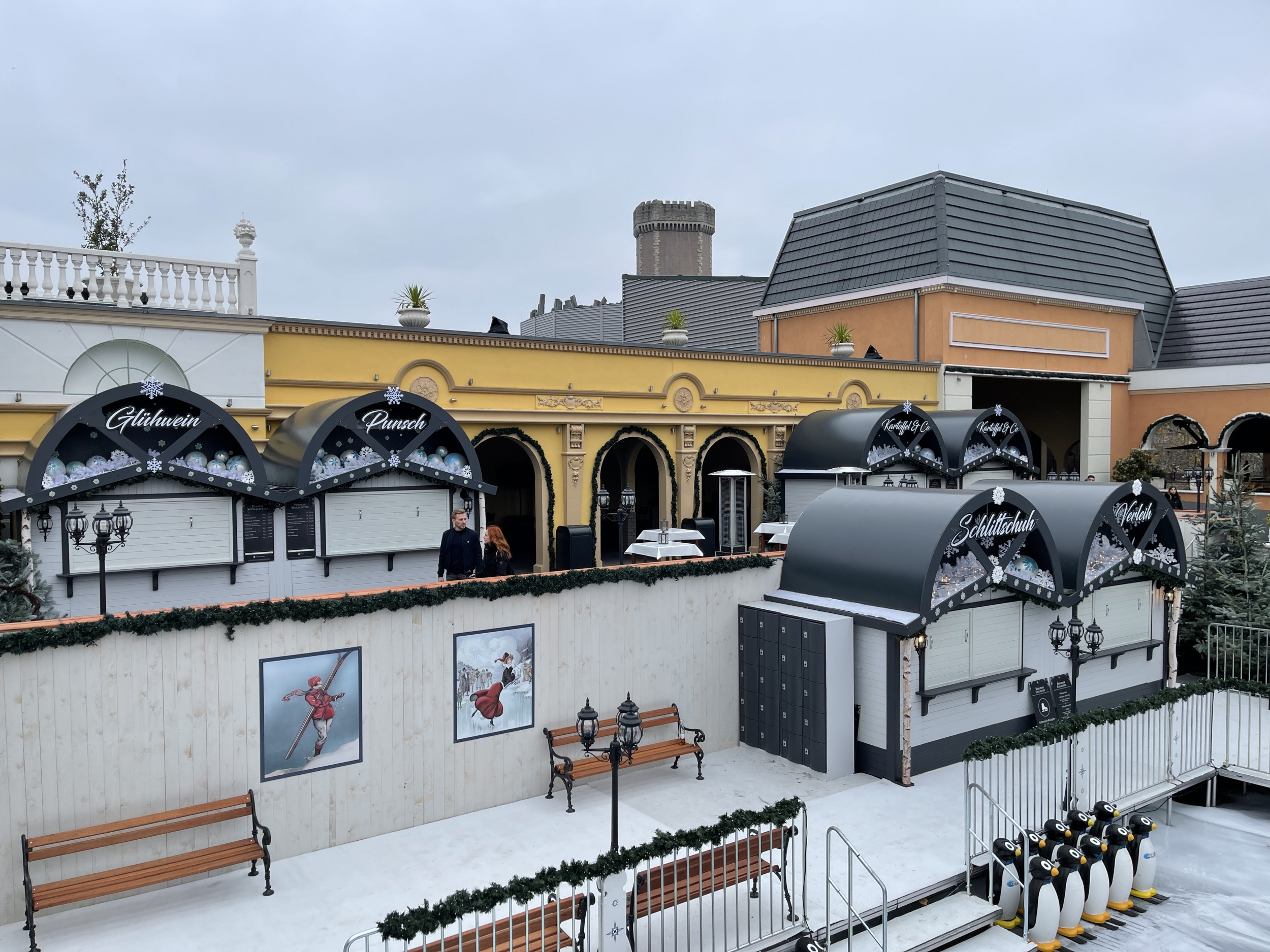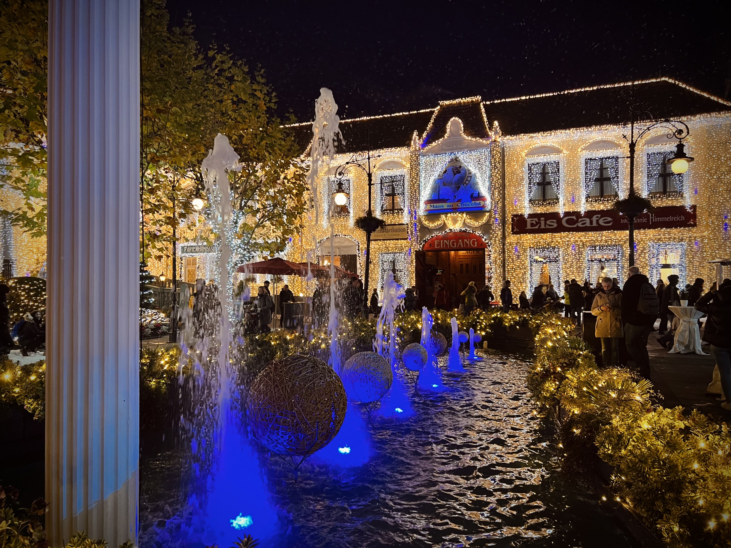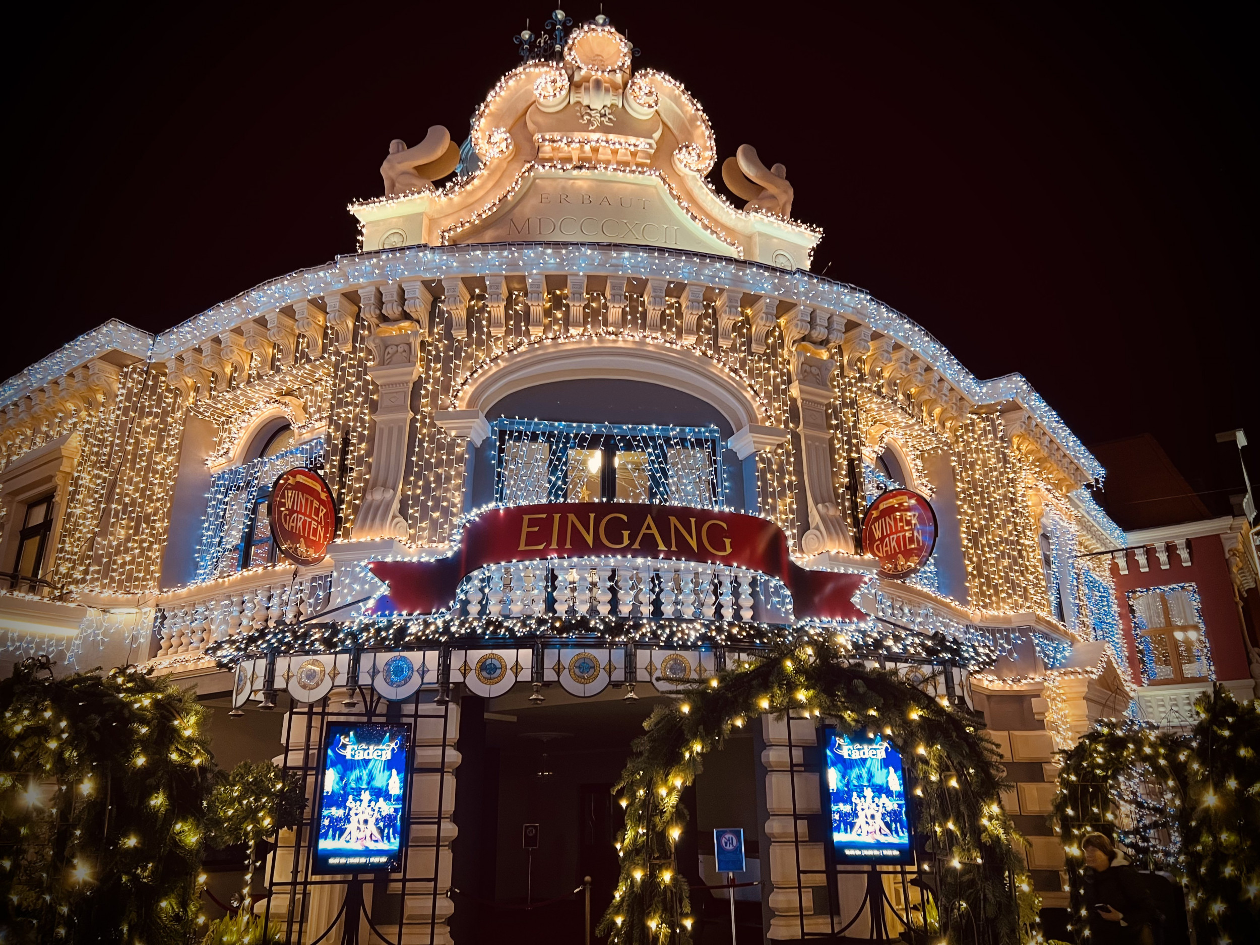 Unser heutiges Winter-Abenteuer startete in der Themenwelt Berlin. Hier lädt die festlich geschmückte Prachtstraße zum Flanieren ein und die vergrößerte Eislaufbahn am Fuße des behaglichen Weihnachtsmarktes, sorgt für eisiges Vergnügen. Der weitläufige Kaiserplatz bildet dabei das Herzstück des winterlichen Treibens. Überall prägen verschneite Tannenbäume die einladende Szenerie, prachtvolle Kostüme entzücken für das perfekte Erinnerungsfoto um die Wette und rundherum duftet es nach schmackhaften Punschspezialitäten und köstlichen Leckereien.
