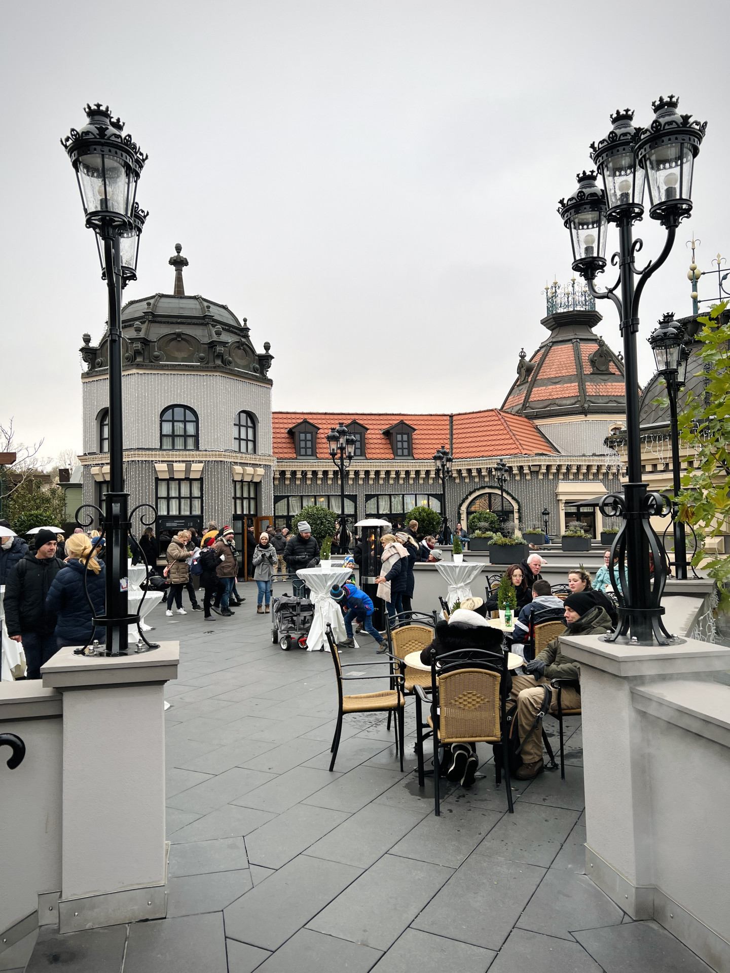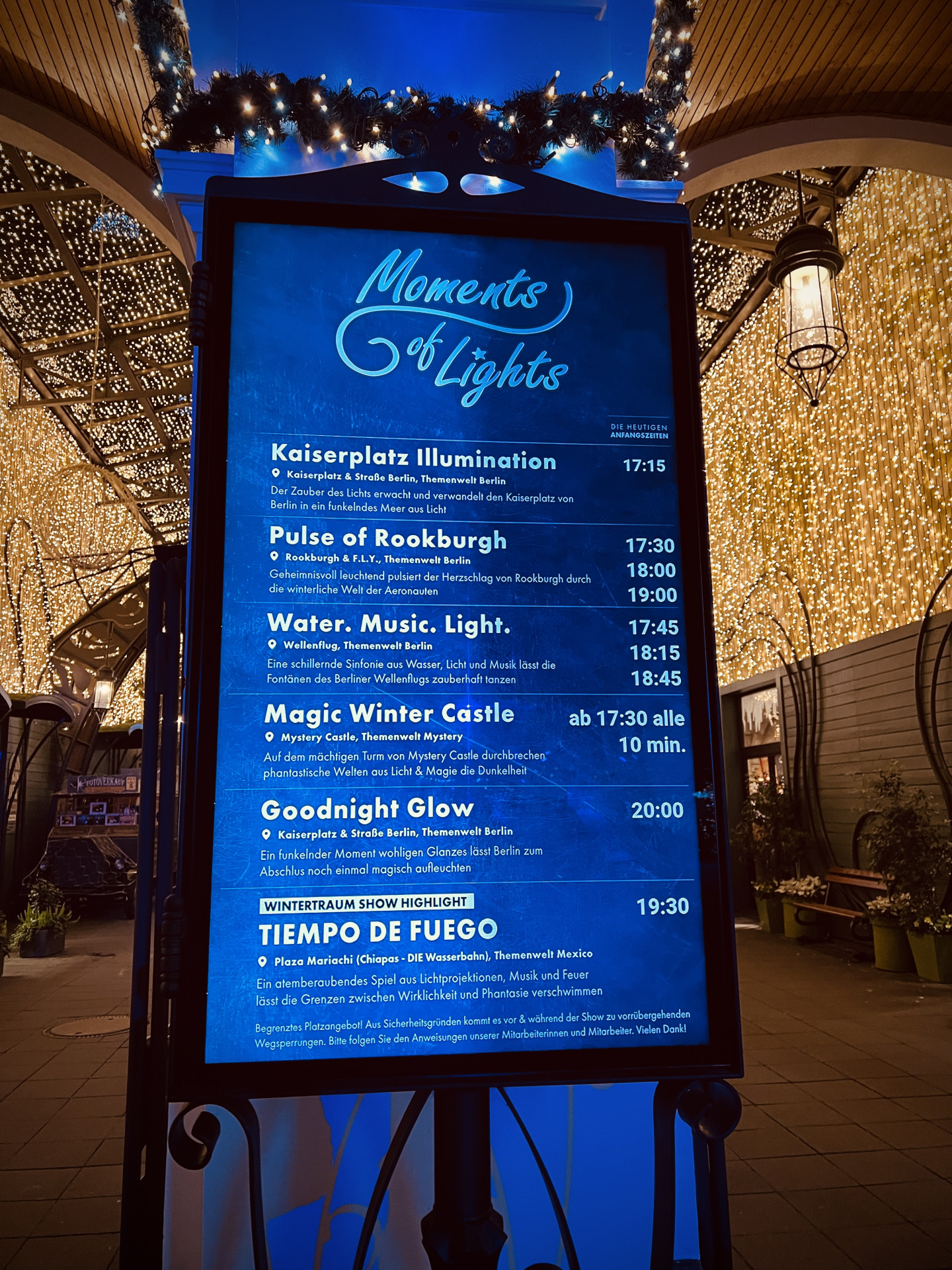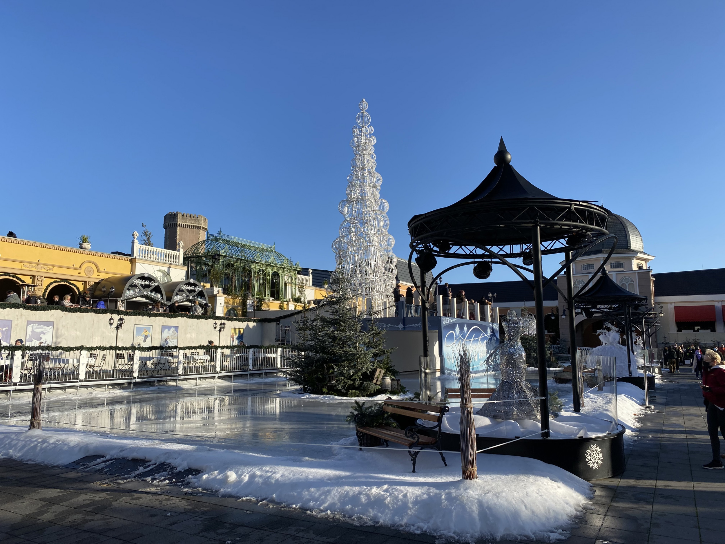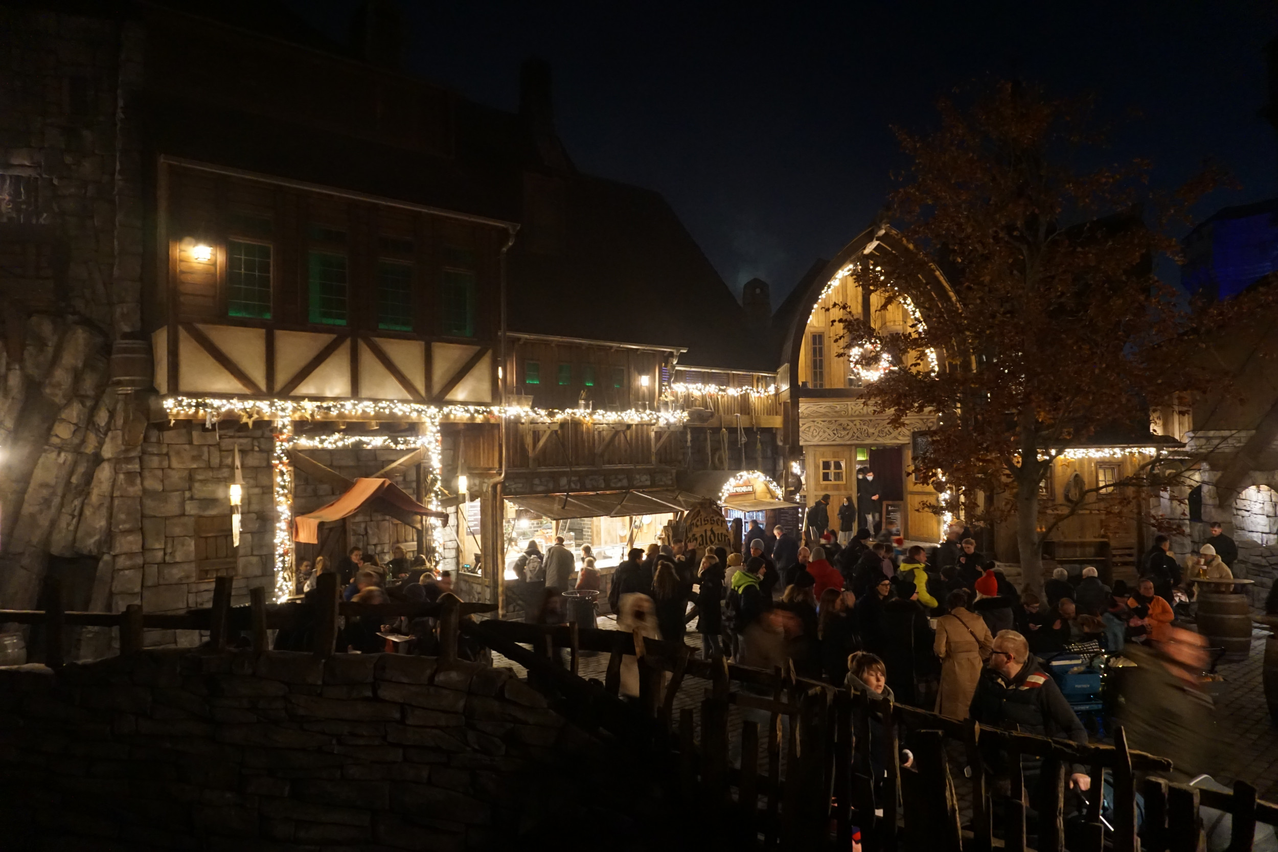 Unser heutiges Winter-Abenteuer startete in der Themenwelt Berlin. Hier lädt die festlich geschmückte Prachtstraße zum Flanieren ein und die vergrößerte Eislaufbahn am Fuße des behaglichen Weihnachtsmarktes, sorgt für eisiges Vergnügen. Der weitläufige Kaiserplatz bildet dabei das Herzstück des winterlichen Treibens. Überall prägen verschneite Tannenbäume die einladende Szenerie, prachtvolle Kostüme entzücken für das perfekte Erinnerungsfoto um die Wette und rundherum duftet es nach schmackhaften Punschspezialitäten und köstlichen Leckereien.