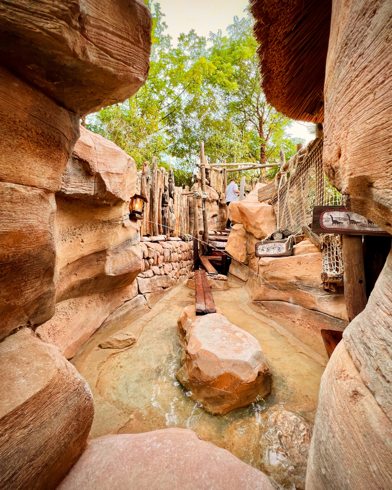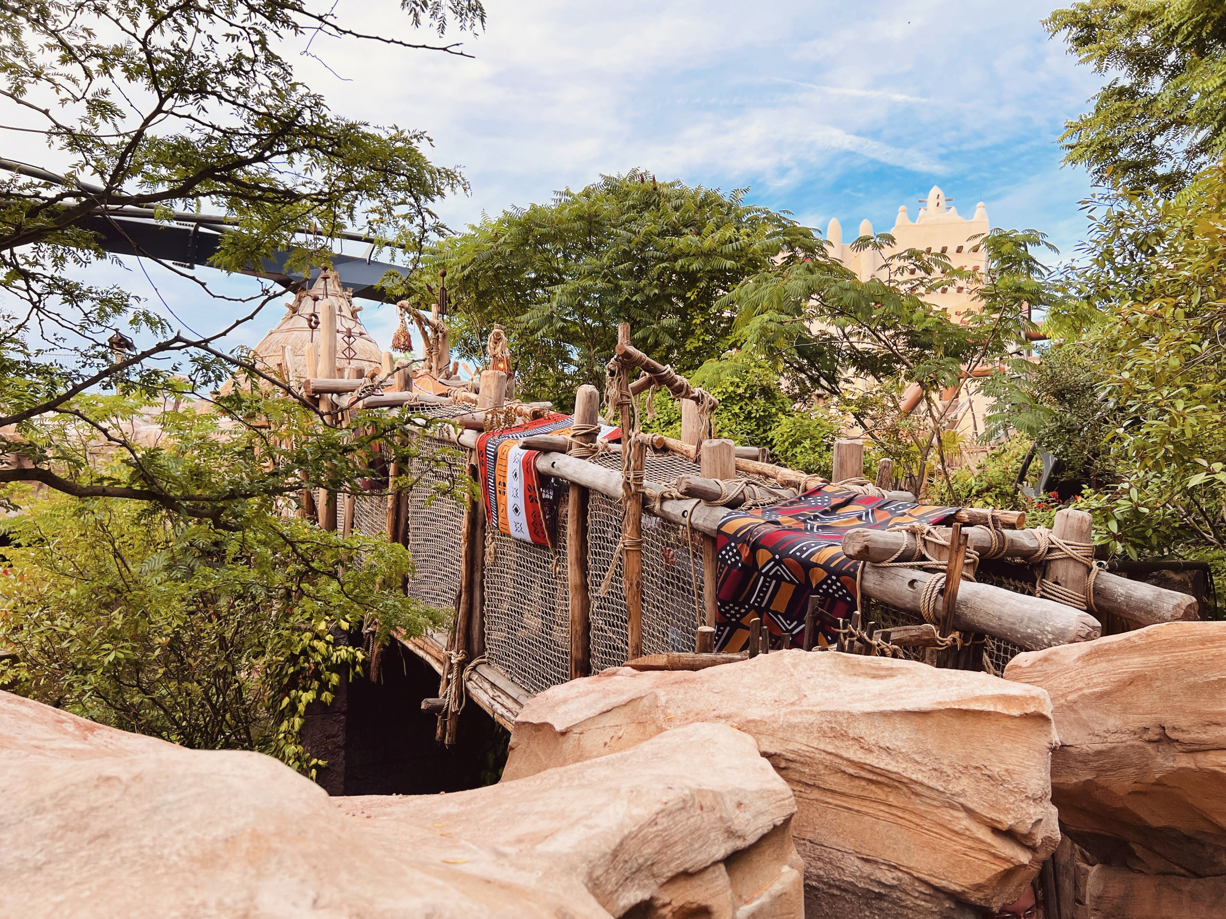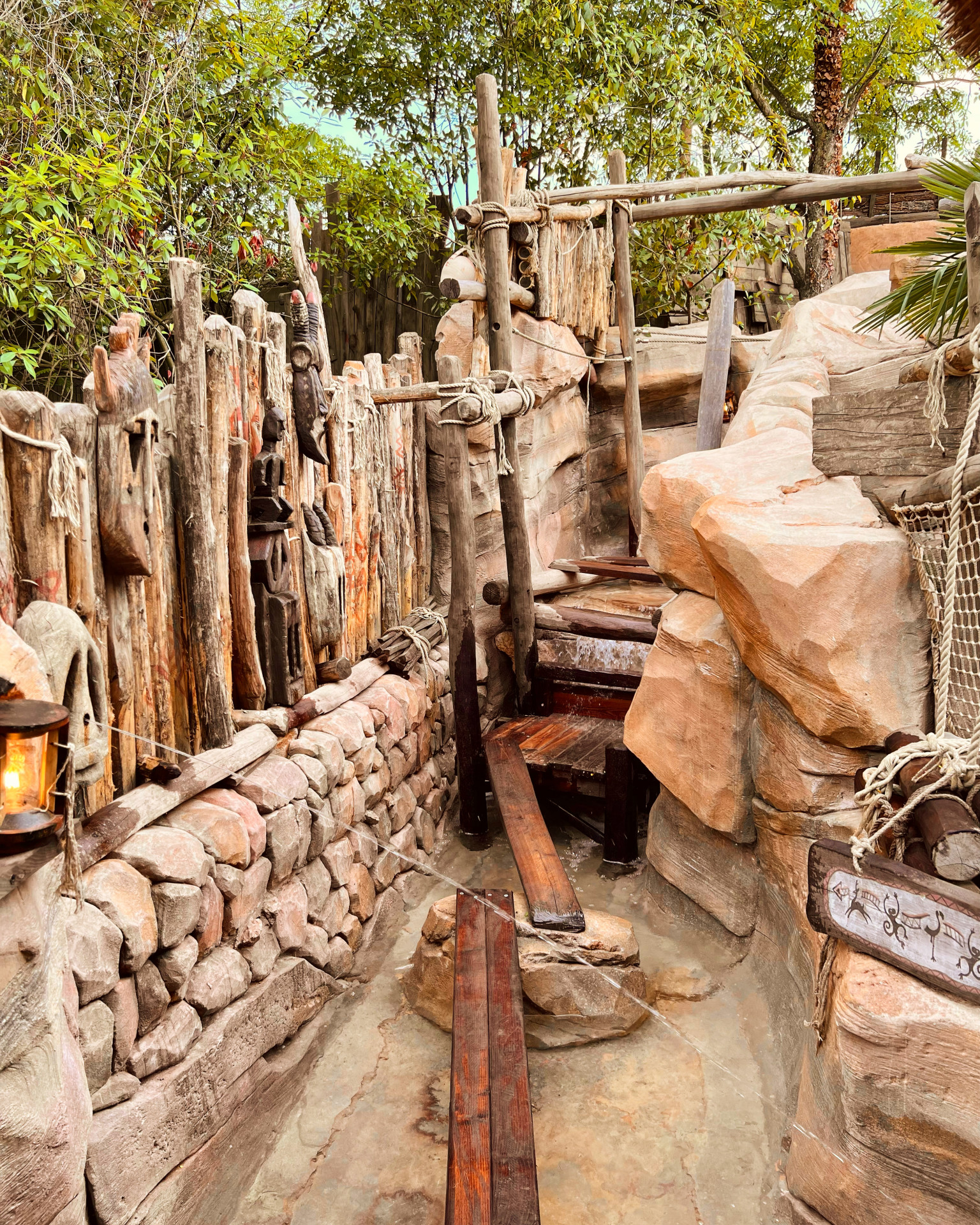 Jede Reise beginnt mit einem ersten Schritt. Unsere abenteuerliche Expedition startete mitten im Herzen des afrikanischen Themenbereichs. Genauer gesagt im Dschungel Outpost, der den direkten Zugang in die faszinierende Wildnis ermöglicht. Nachdem wir in den Räumlichkeiten des Außenpostens zunächst unserer Besatzung zugeteilt und mittels einer großflächigen Hiking Map auf unseren bevorstehenden Rundgang vorbereitet wurden, betraten wir als Gruppe erstmals die magische Dschungelwelt.