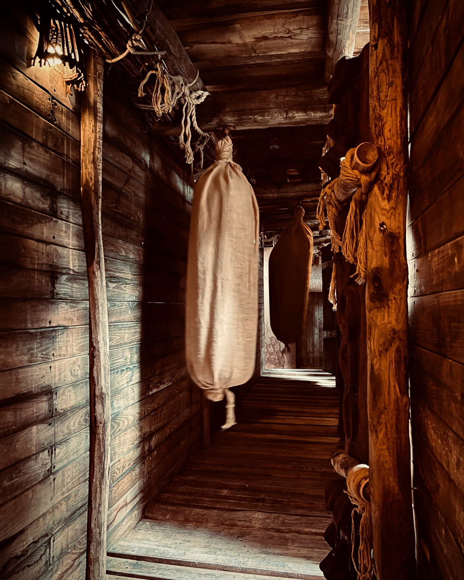 Am Fuße des imposanten Affenfelsens entdeckten wir eine kleine, scheinbar unbewohnte Schamanenhütte, die uns aus ihrem Inneren heraus noch nie dagewesene Perspektiven auf die bissige Mamba und die umliegende Landschaft ermöglichte. Währenddessen berichtete uns einer der Tourguides* enthusiastisch von einer sagenumwobenen Tombo Grotte. Glaubt man den aufgeregten Stimmen anderer, um uns herumstehenden Crew Mitgliedern, so soll sie das unumstrittene Highlight der Tour sein und befindet sich im schroffen Gebirge am Rande eines ansässigen Volksstammes.