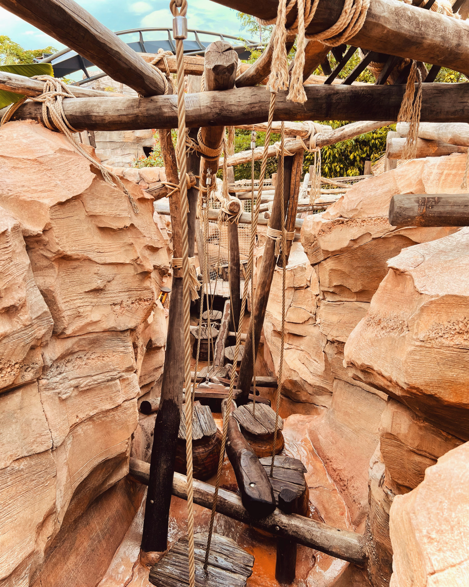 Inmitten der eng verschlungenen Topographie des mehrfach ausgezeichneten Inverted-Coaster Black Mamba, wartet ab sofort ein ganz neues Walk-Through-Abenteuer auf Euch: Ein weitläufiger Parcours führt über schwindelerregende Hängebrücken, waghalsige Hindernisse und immer haarscharf vorbei am Schienenlabyrinth der beliebten Achterbahn.