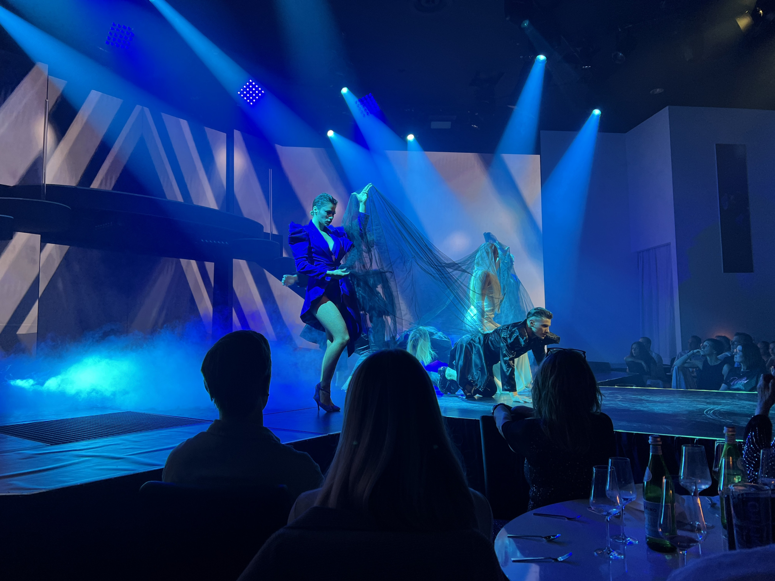 Ein weiterer bemerkenswerter Aspekt ist die musikalische Begleitung durch eine Live-Band, die das Ensemble auf der Bühne den gesamten Abend hindurch unterstützt. Diese musikalische Untermalung fügt sich perfekt in das Gesamterlebnis ein und verleiht der Show einen besonders stimmigen, fast magischen Rahmen. Wie ein Puzzle fügen sich all diese Elemente – die Kostüme, das Service, die Musik und die Darbietungen – zu einem harmonischen Gesamtbild zusammen, das in seiner Vollkommenheit schlichtweg einzigartig ist und seinesgleichen sucht.