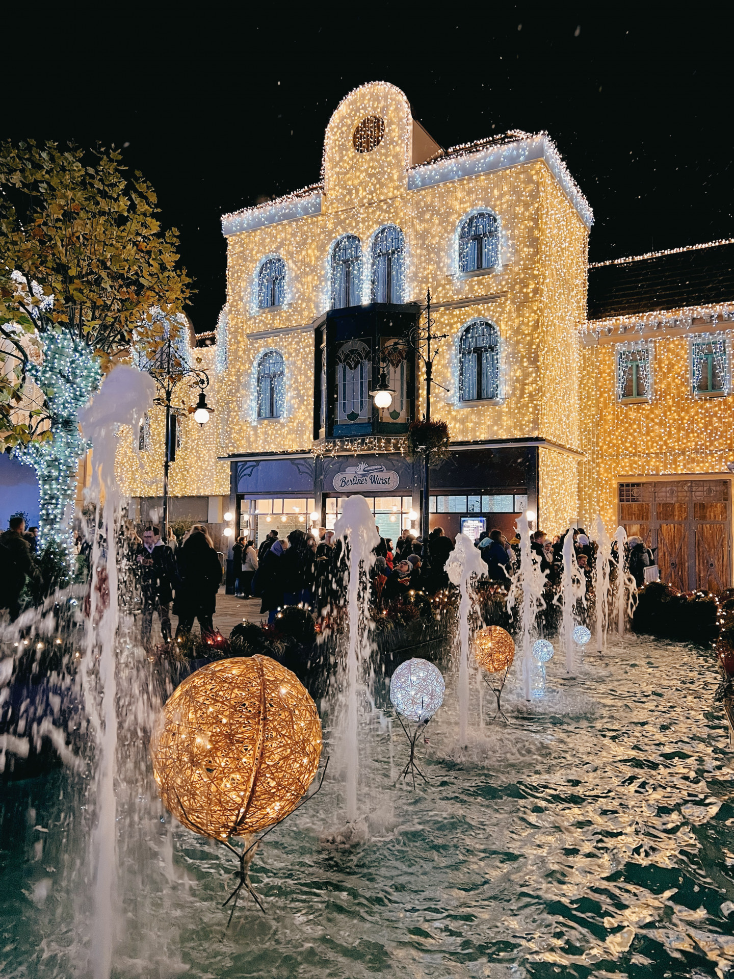 Bleiben wir doch noch einen Moment in der Themenwelt Berlin. Unser heutiges Winter-Abenteuer startete nämlich genau hier. Die festlich geschmückte Berliner Prachtstraße lädt zum Flanieren ein und die Eislaufbahn am Fuße des behaglichen Weihnachtsmarktes, sorgt für eisiges Vergnügen. Der Kaiserplatz bildet dabei das Herzstück des winterlichen Treibens. Überall prägen verschneite Tannenbäume die einladende Szenerie, prachtvolle Kostüme entzücken für das perfekte Erinnerungsfoto um die Wette und rundherum duftet es nach schmackhaften Punschspezialitäten und köstlichen Leckereien.