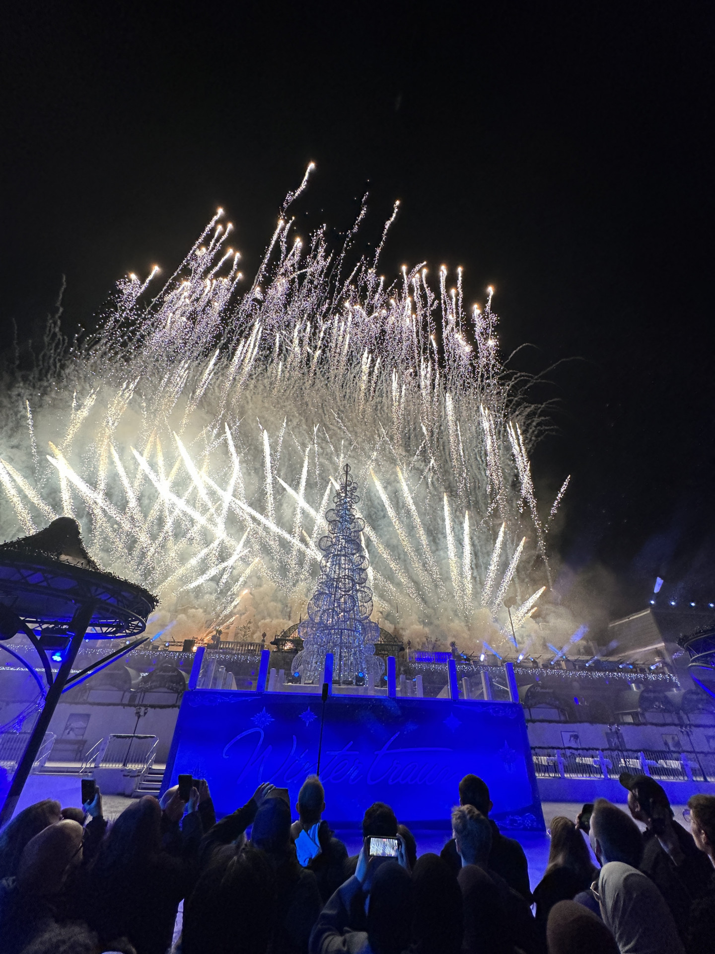 Neben der inszenierten eindrucksvollen Tree Lighting-Zeremonie und den funkelnden, musikuntermalten Wasserspielen rund um den Wellenflug, präsentiert das Phantasialand auch in diesem Jahr MAGIC SYMPHONY. Die große Abendshow erstrahlt den nächtlichen Himmel, setzt den allabendlichen Glanzpunkt und verspricht absolute Gänsehaut-Garantie. So erwartet euch auf dem Kaiserplatz ein visuelles Erlebnis, das Eleganz, Innovation und die unverkennbare Magie des Wintertraums in einem bildgewaltigen Finale vereint. Ein fulminanter Abschluss auf Disney-Niveau. Das müsst ihr gesehen und vor allem erlebt haben! Positioniert euch am besten unmittelbar vor der Eislaufbahn oder stoßt auf der Außenterrasse des Restaurants Unter den Linden mit einer dampfenden Tasse Glühwein auf euren perfekten Wintertag an. Hier steht ihr inmitten eines traumhaften Meers aus abertausenden Lichtern und genießt die Aussicht auf folgende Highlights: