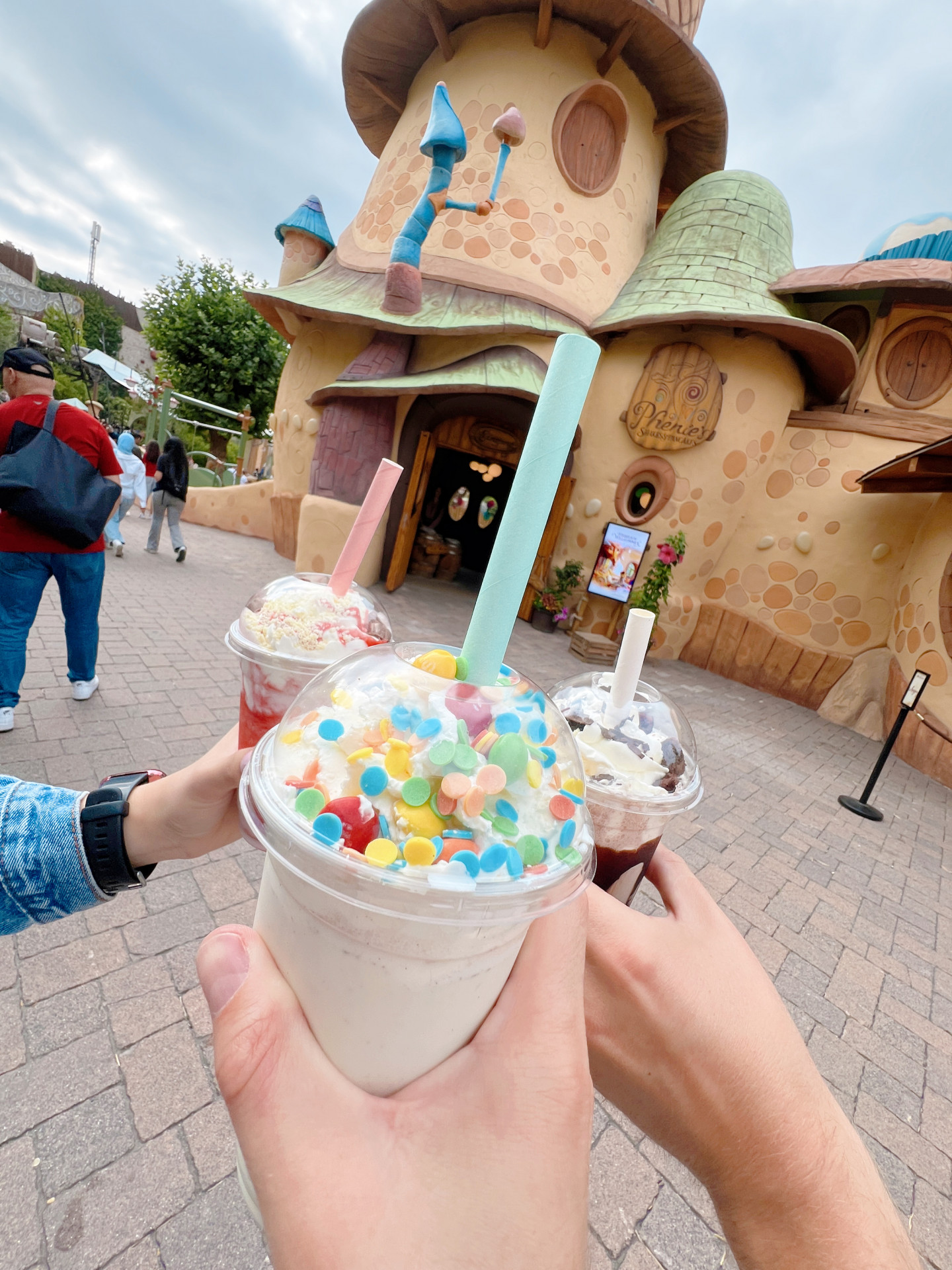 Und auch die 𝗦𝗵𝗮𝗸𝗲𝘀 sind wahre Schaustücke – cremig, üppig und so detailreich dekoriert, dass sie fast zu schade zum Antrinken sind: Karamell in feinen Schlieren, schneeweiße Clouds aus Zuckerwatte, kleine, essbare Skulpturen. Mit ihrer Fülle und opulenten Gestaltung können sie problemlos als eigenständige Mahlzeit durchgehen.