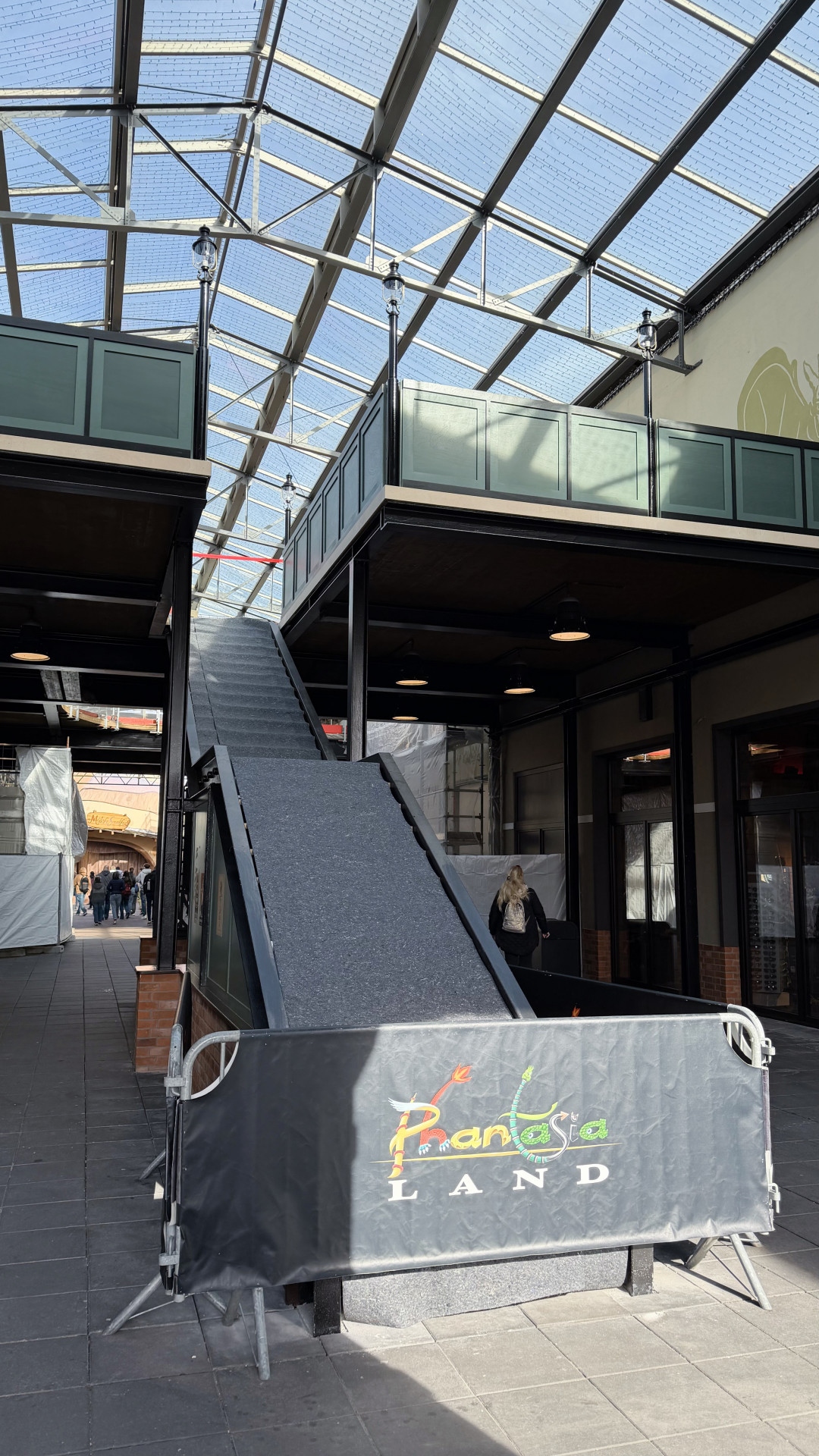 Fassaden, die bislang neutral erschienen, tragen nun den typischen Berliner Stil: Das Eiscafé Himmelreich, der Ausgang von Maus au Chocolat und auch die Schaufenster des „Haus der 6 Drachen“ greifen diese Gestaltung auf und wirken dadurch wie ein zusammenhängendes Straßenbild. Die neu geschaffene Empore dient dabei nicht nur als architektonisches Element, sondern auch als bewusst gesetzte Grenze – ein Übergang, der Berlin klar von der benachbarten Themenwelt Fantasy trennt.