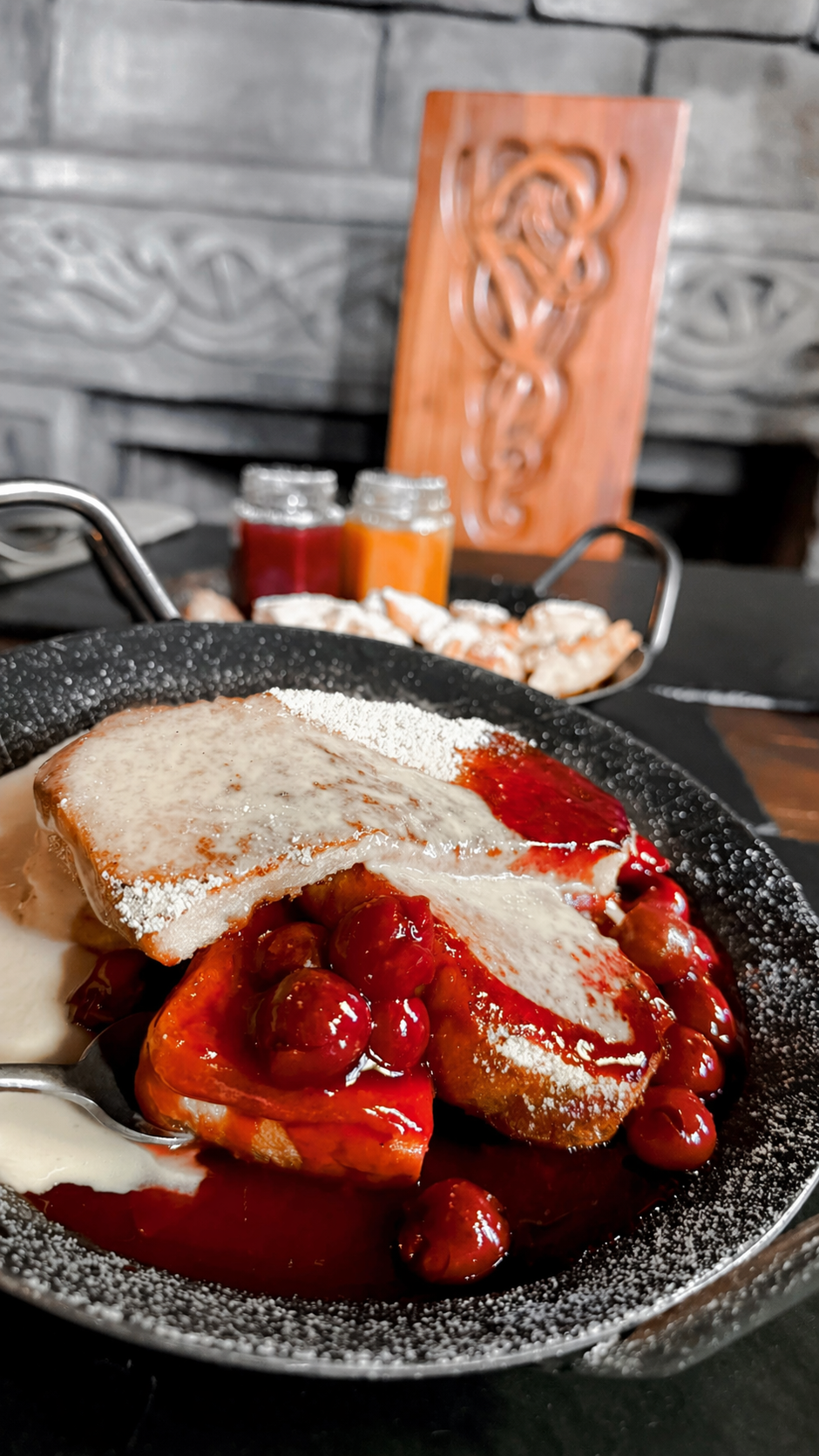 Im neuesten Genussort des Phantasialand entstehen keine gewöhnlichen Pfannkuchen, sondern sorgfältig inszenierte Kreationen. Goldbraun gebacken, luftig und mit einer Detailverliebtheit angerichtet, die sie fast zu kleinen Kunstwerken macht. Die Kombination aus verspielter Süßwarenoptik und klarer Präsentation sorgt dafür, dass hier nicht einfach serviert wird – hier wird inszeniert.