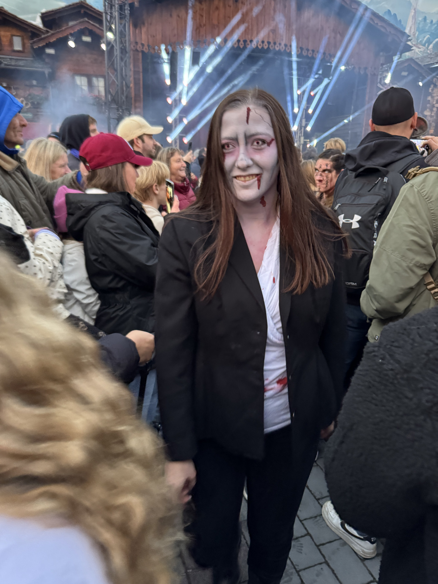 Während wir uns durch die Wege bewegen, merken wir immer wieder, wie lebendig dieses Event ist. Die Live-Erschrecker sind überall und ihre Präsenz bleibt unberechenbar. Mal stehen sie plötzlich direkt vor uns, mal tauchen sie im Augenwinkel auf. Dazu kommen Fahrten auf Klassikern wie Sky Scream, die nachts noch einmal eine ganz eigene Intensität entwickeln. Hier lebt Horror wirklich an jeder Ecke.