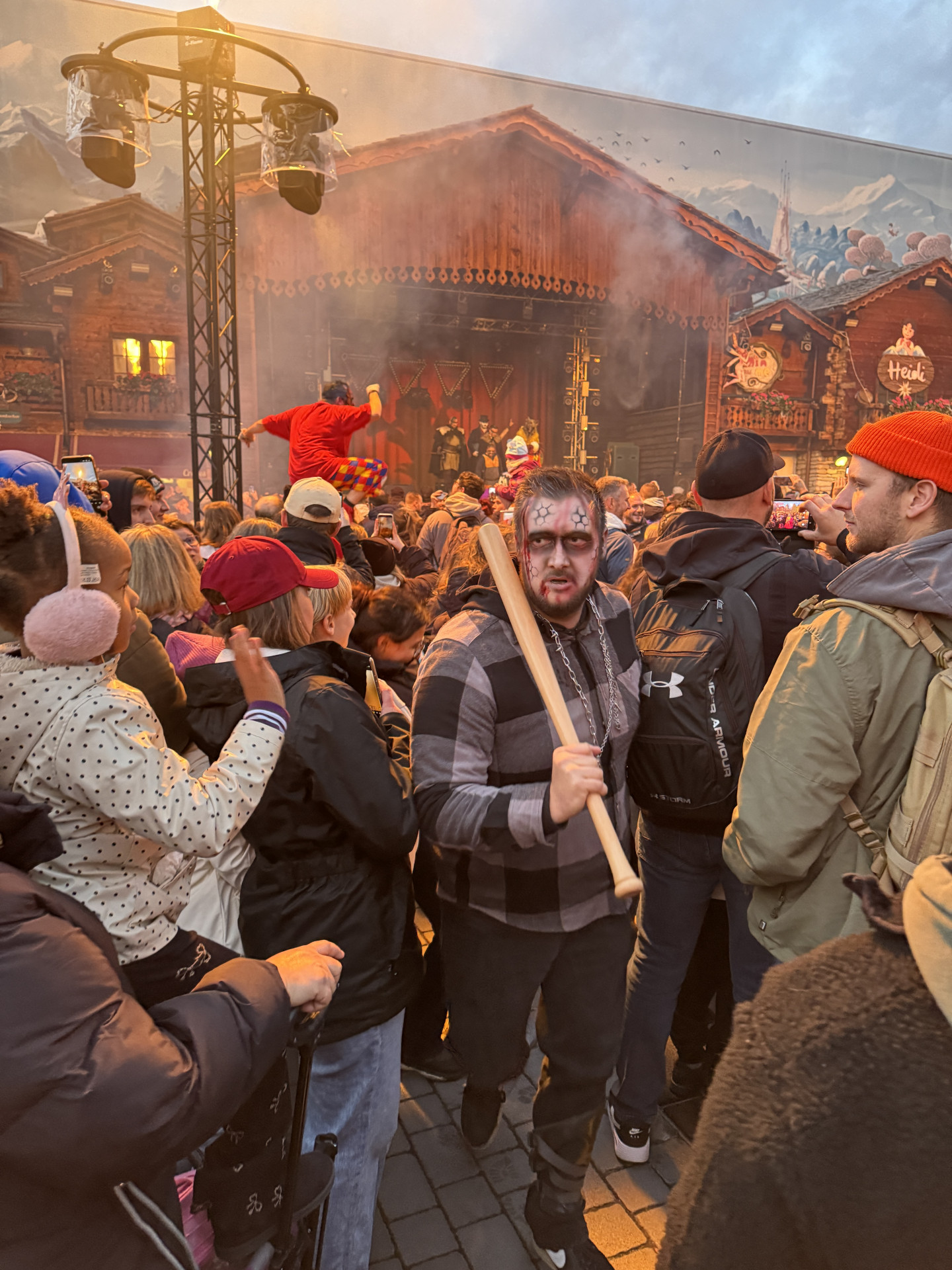 Sobald die Uhr jedoch 18 Uhr schlägt, kippt die Stimmung. Dann beginnen die Halloween Fright Nights und der Park verwandelt sich in ein Horror-Spektakel, das einem sofort das Blut in den Adern gefrieren lässt. Die freundliche Deko wirkt plötzlich bedrohlich, Nebel zieht über die Wege und die Monster übernehmen die Macht.