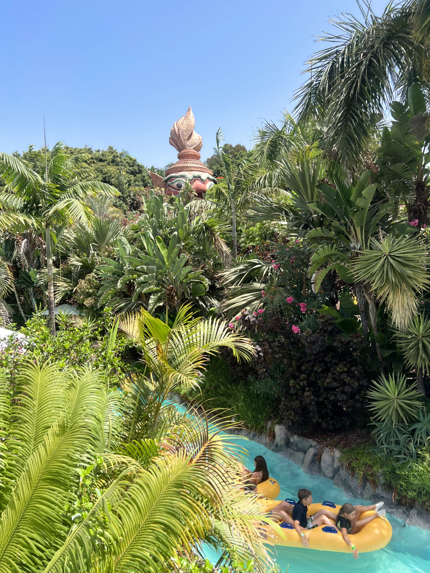 Schon beim Betreten des Parks spürt man, dass hier viel mehr als „nur“ Rutschen geboten wird. Der Siam Park entführt euch in ein detailverliebtes thailändisches Königreich – inklusive Palästen, Drachenfiguren, schwimmender Märkte und tropischer Vegetation. Jedes Detail scheint mit Bedacht gewählt und vermittelt echtes Urlaubsflair.
